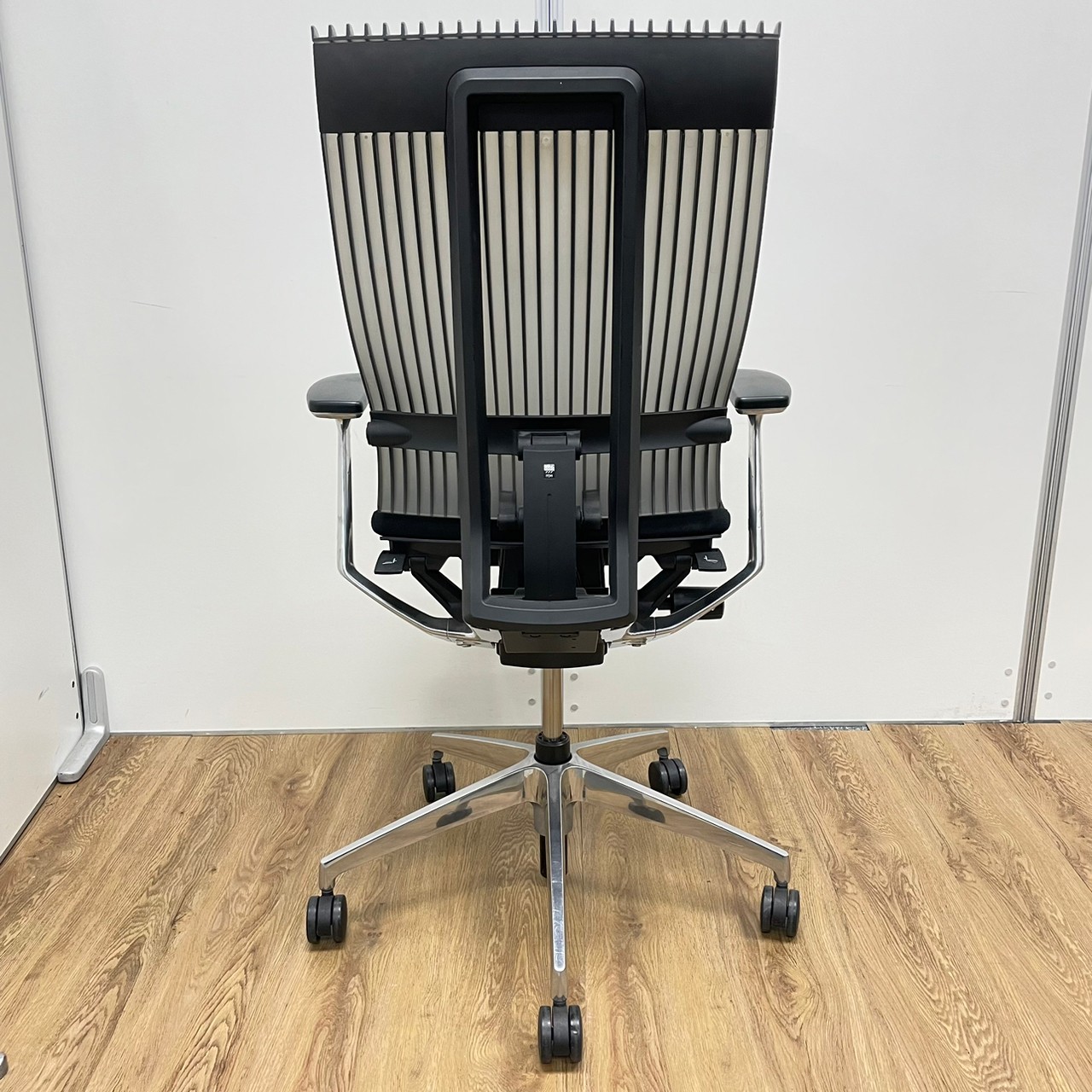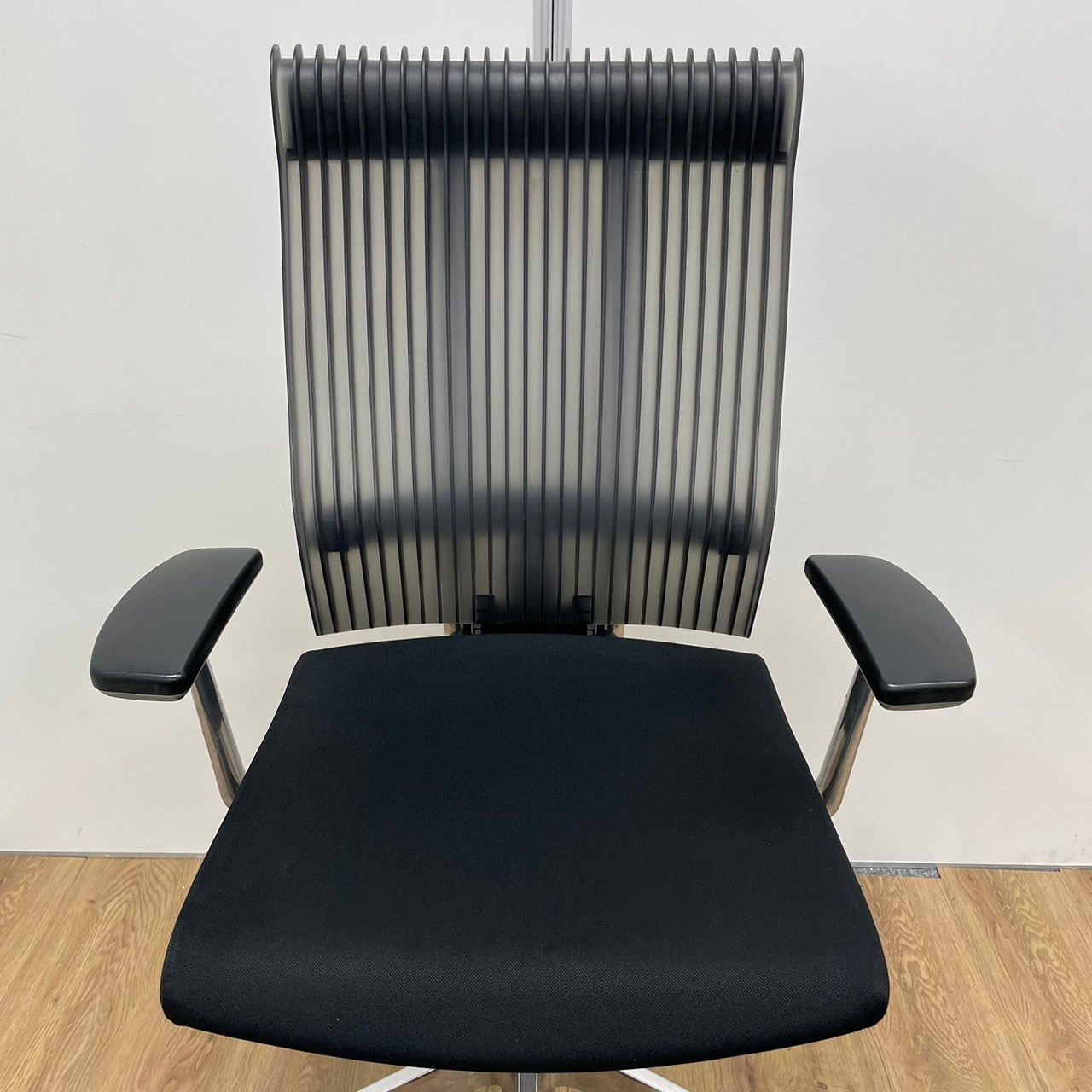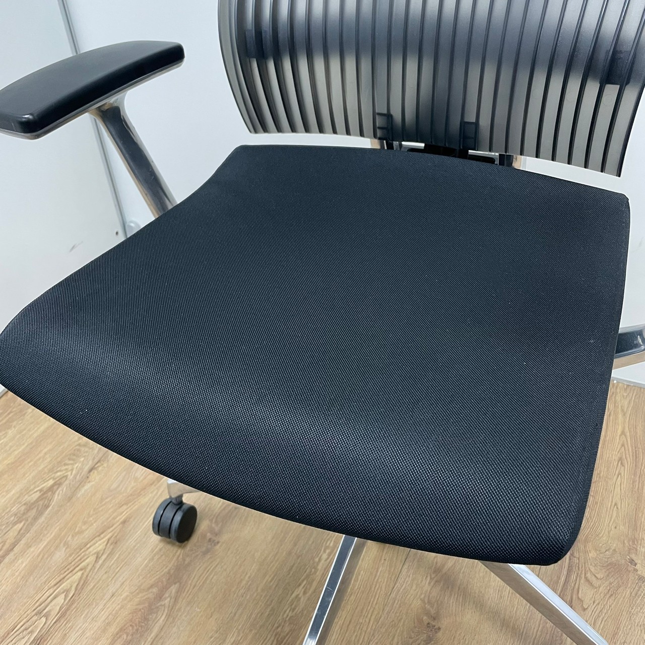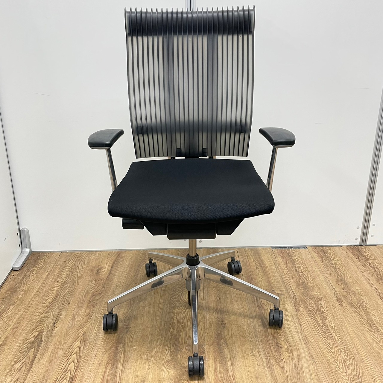 イトーキ製 スピーナシリーズ 背もたれスモークグレー 肘付きハイバックチェア!!※脚アルミミラー- 京都東寺店