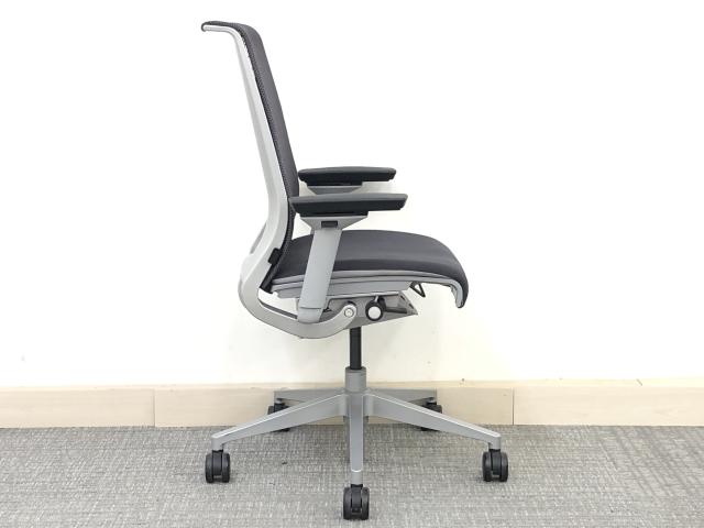 快適な座り心地に不可欠な調節機能である、上下昇降、座面の奥行き調整、リクライニングなどを備えており、操作もわかりやすく好評です。 特に、座面の奥行きは、座面下の左右に通った細いバーで調整でき、座ったままで軽やかに滑るように調整が可能です。 価格面では、新品では高めですが、中古は流通も多く、定価の3割前後の価格で高級チェアの座り心地を手に入れることができます!
