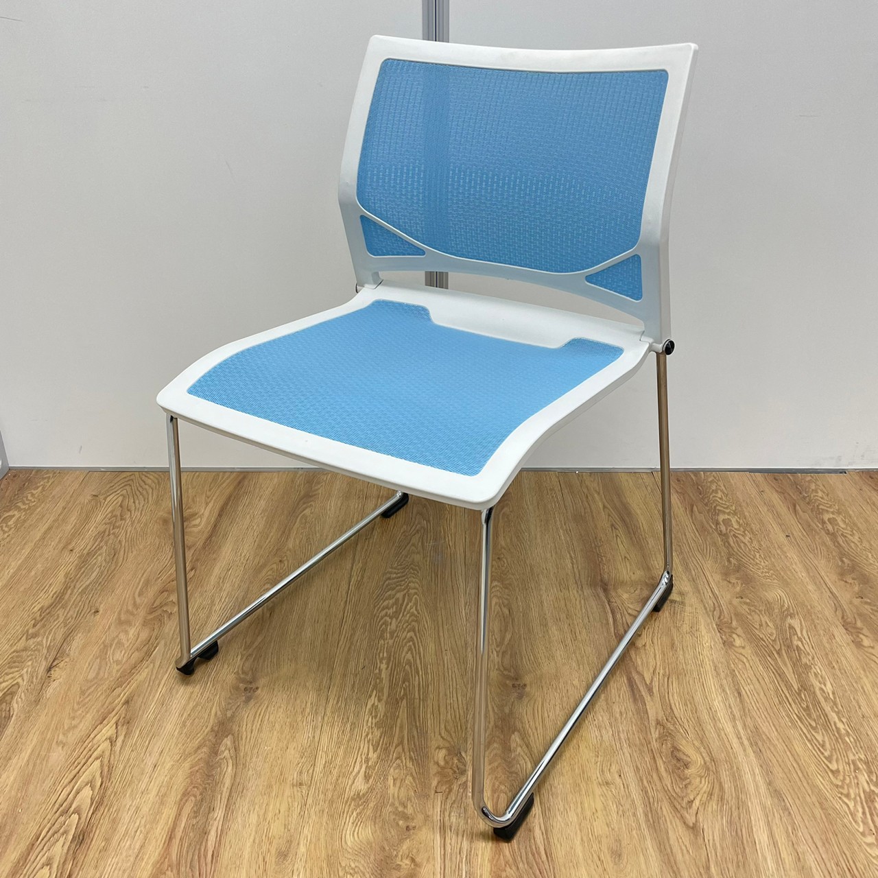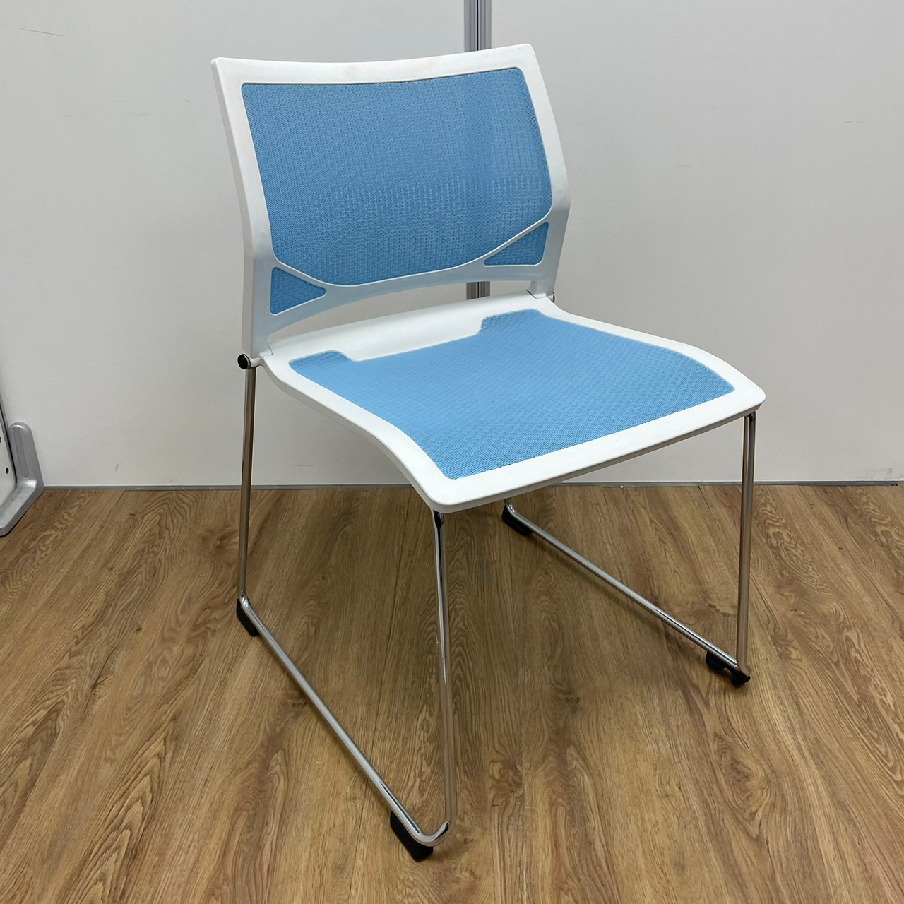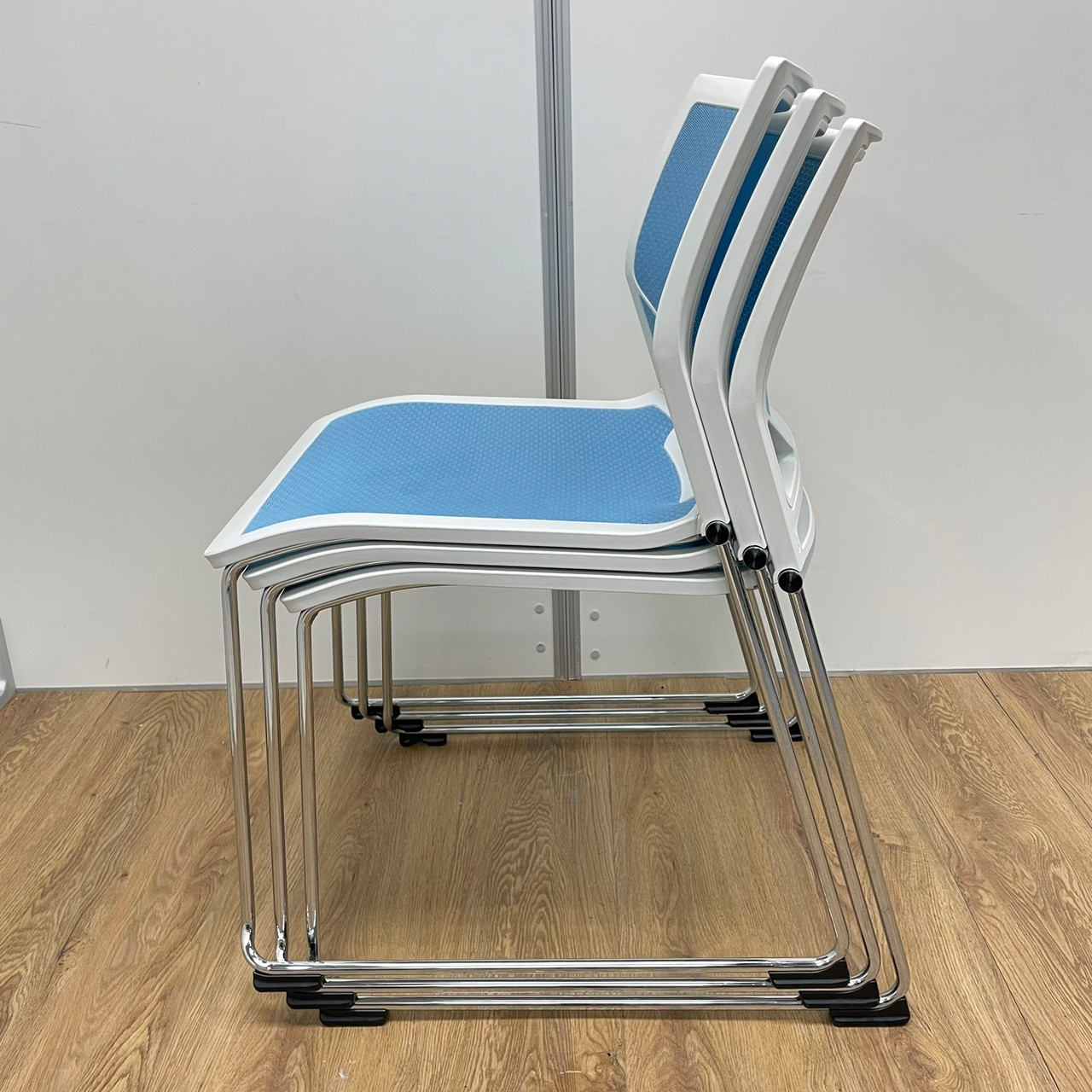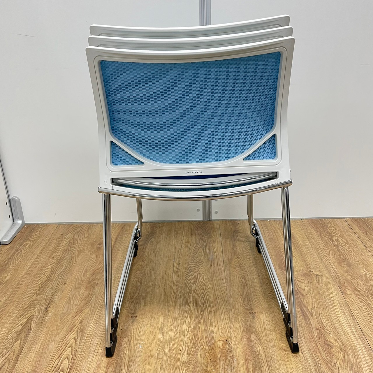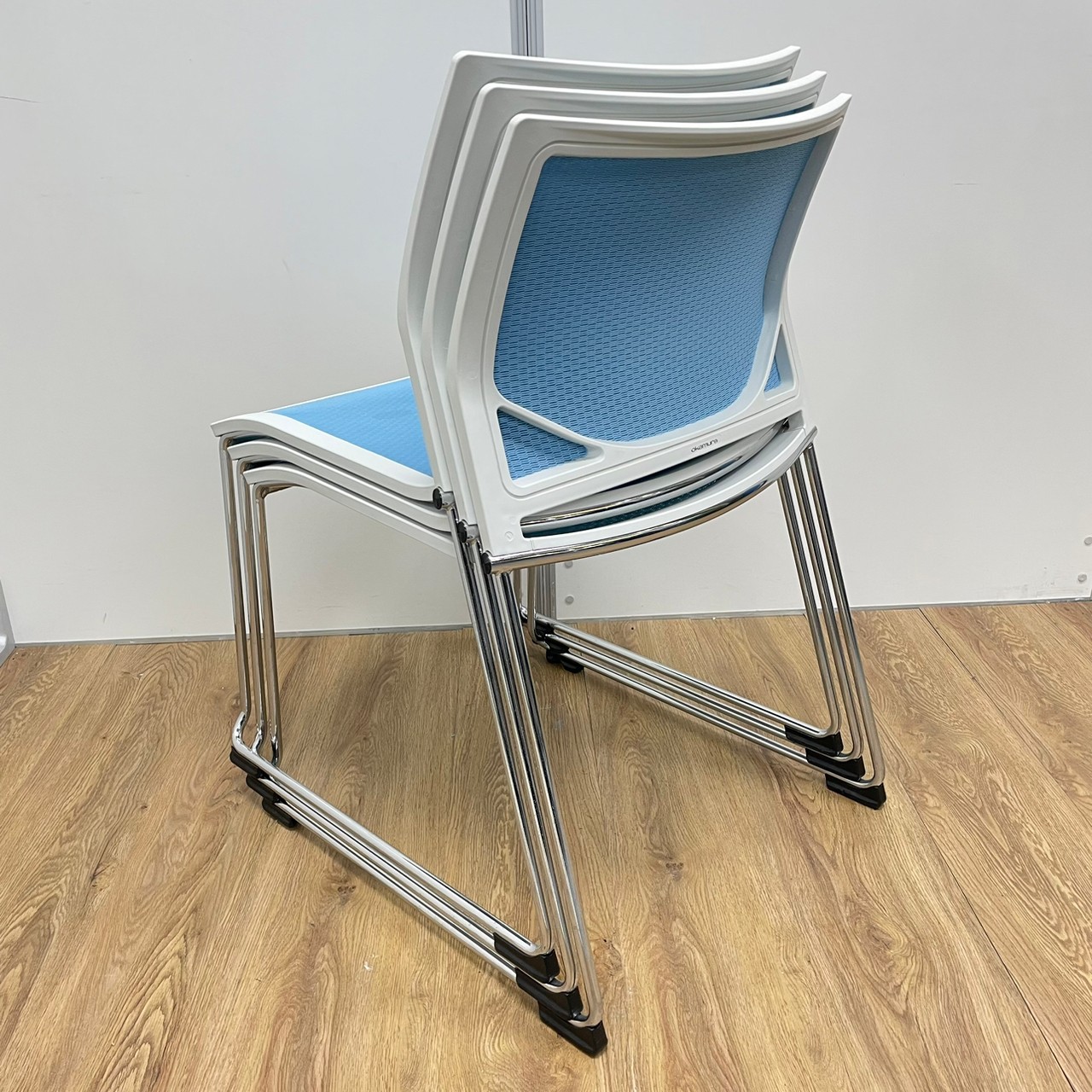 【3脚限りのため、3脚セット】オカムラ製 ツァルトシリーズ ライトブルー スタッキングチェア!!- 京都東寺店