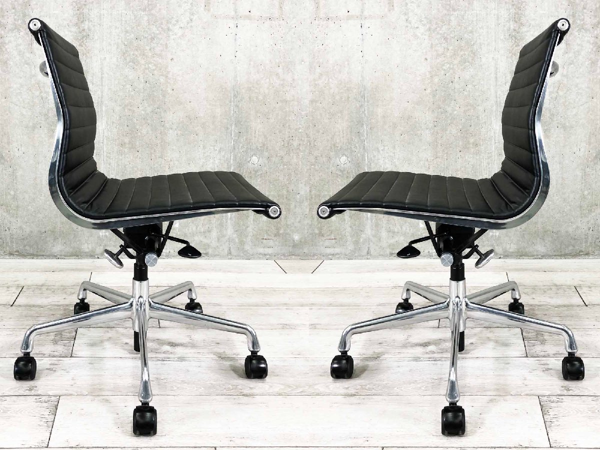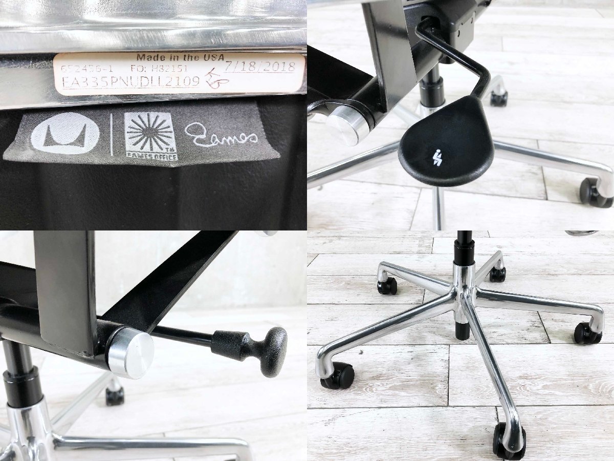 HermanMiller/ハーマンミラー イームズ アルミナムチェア サイドチェア 本革 ガス圧昇降機能 黒- デザイナーズ家具センター