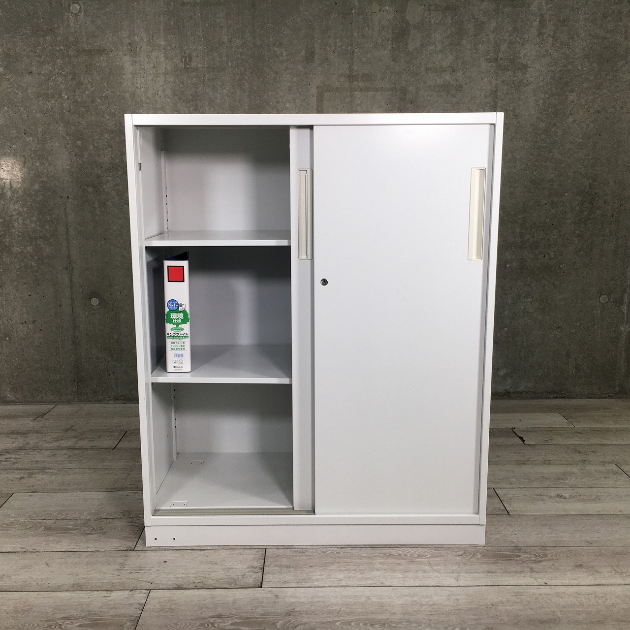 【スライド扉でスペースを有効活用!】■ウチダ(UCHIDA) HSシリーズ 引戸書庫 ホワイト ※取っ手に日焼けあり