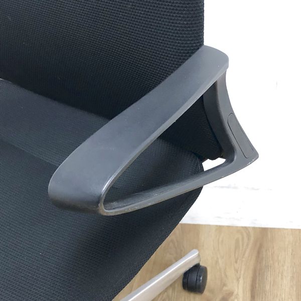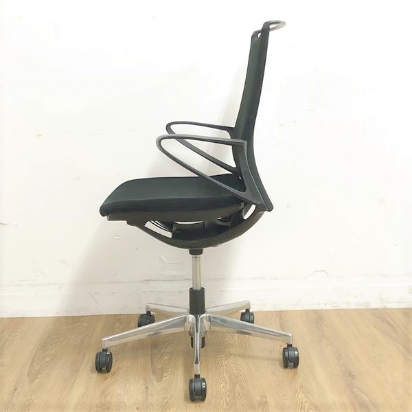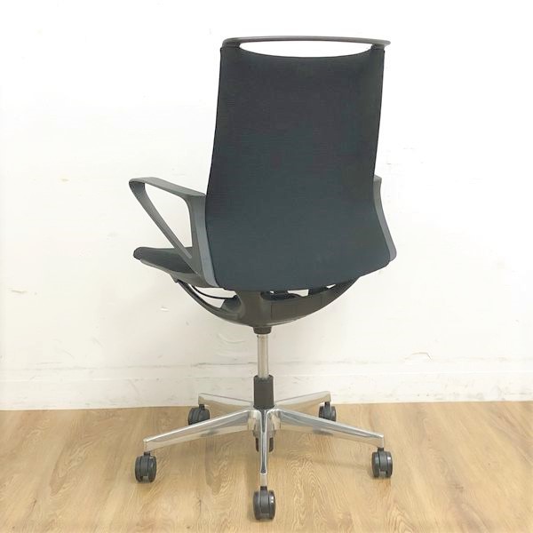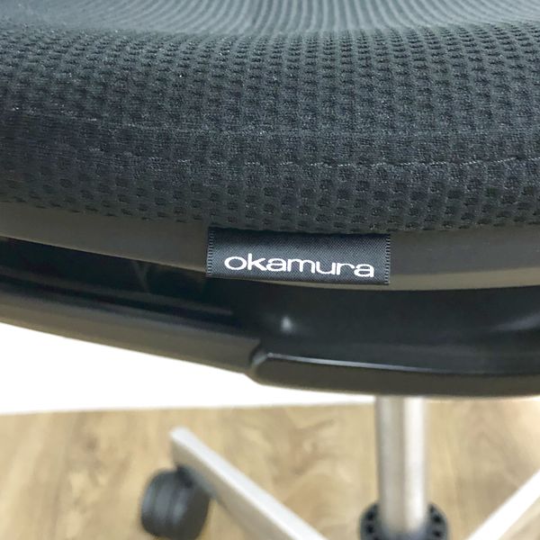 【在庫入替セール】オカムラ モード デザインアーム搭載 ミドルバック ブラック×アルミ脚 張地:クロス(プレーン) 高いデザイン性×シンプルかつ操作性のある機能