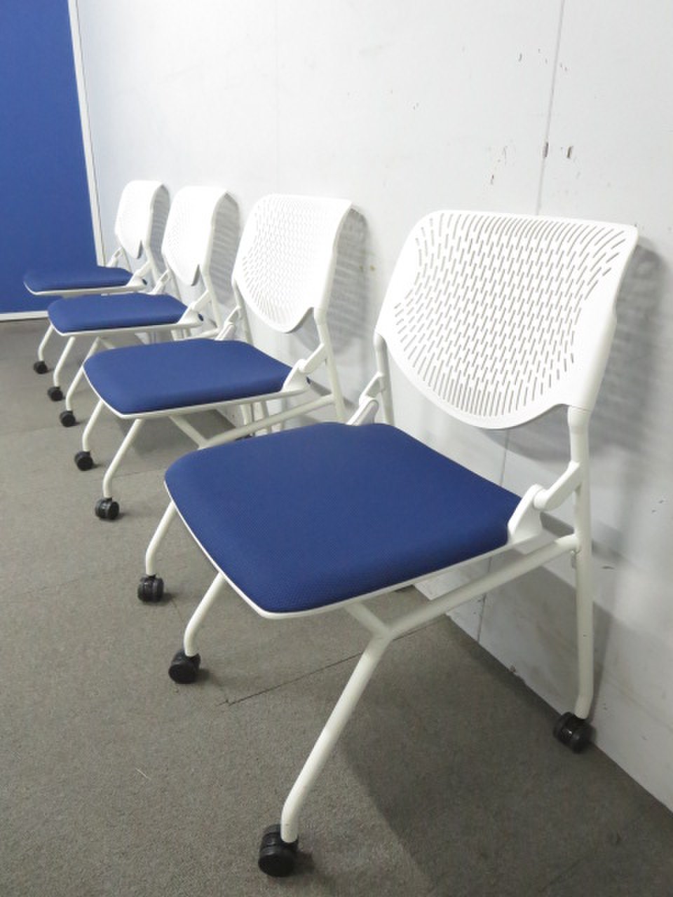 【良い品がお買い得!】■オカムラ製 ネスティングチェア ■ルナチェア ブルー ホワイト- 東大阪店