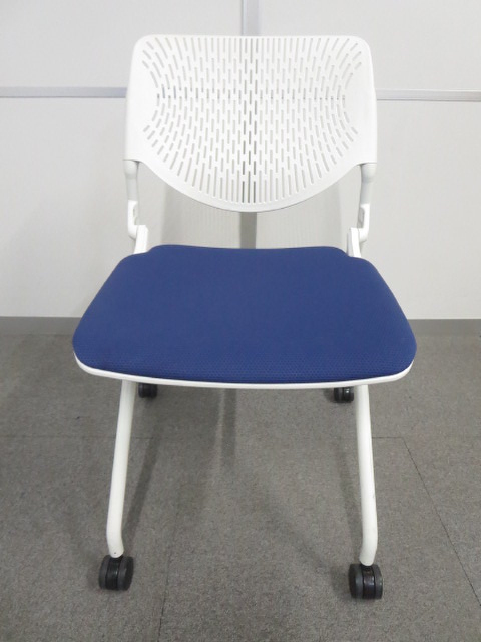 【使わない時は重ねて収納!さまざまな場面で活躍するミーティングチェア!】■オカムラ(okamura) ルナ(RUNA)チェア ネスティングチェア ミーティングチェア ■背面ヌードタイプ ■座面:ブルー × 背面:ホワイト オフィスバスターズ心斎橋店 ■弊社使用欄【A01023670】【T12】