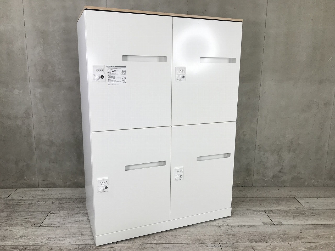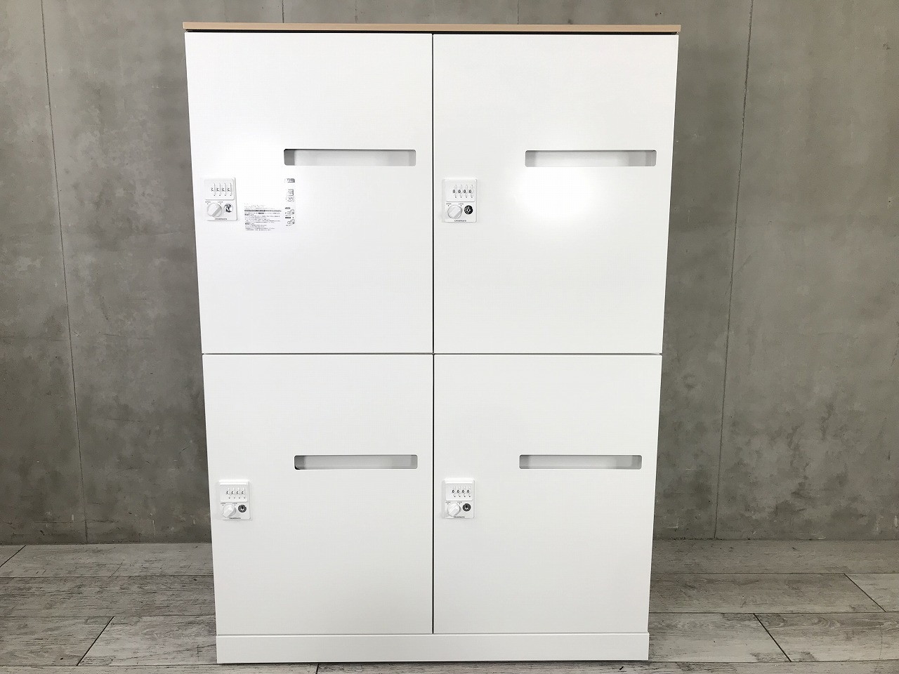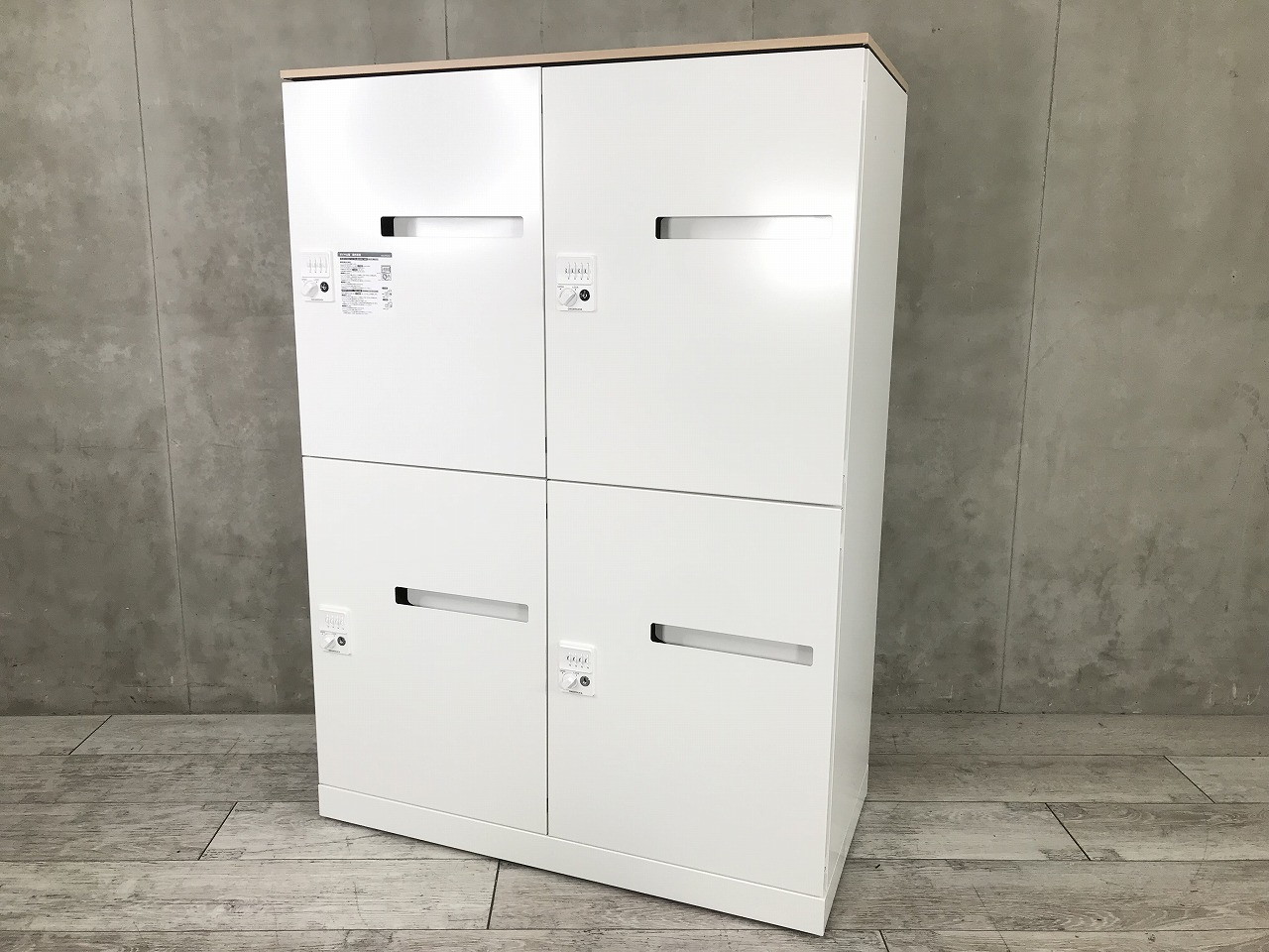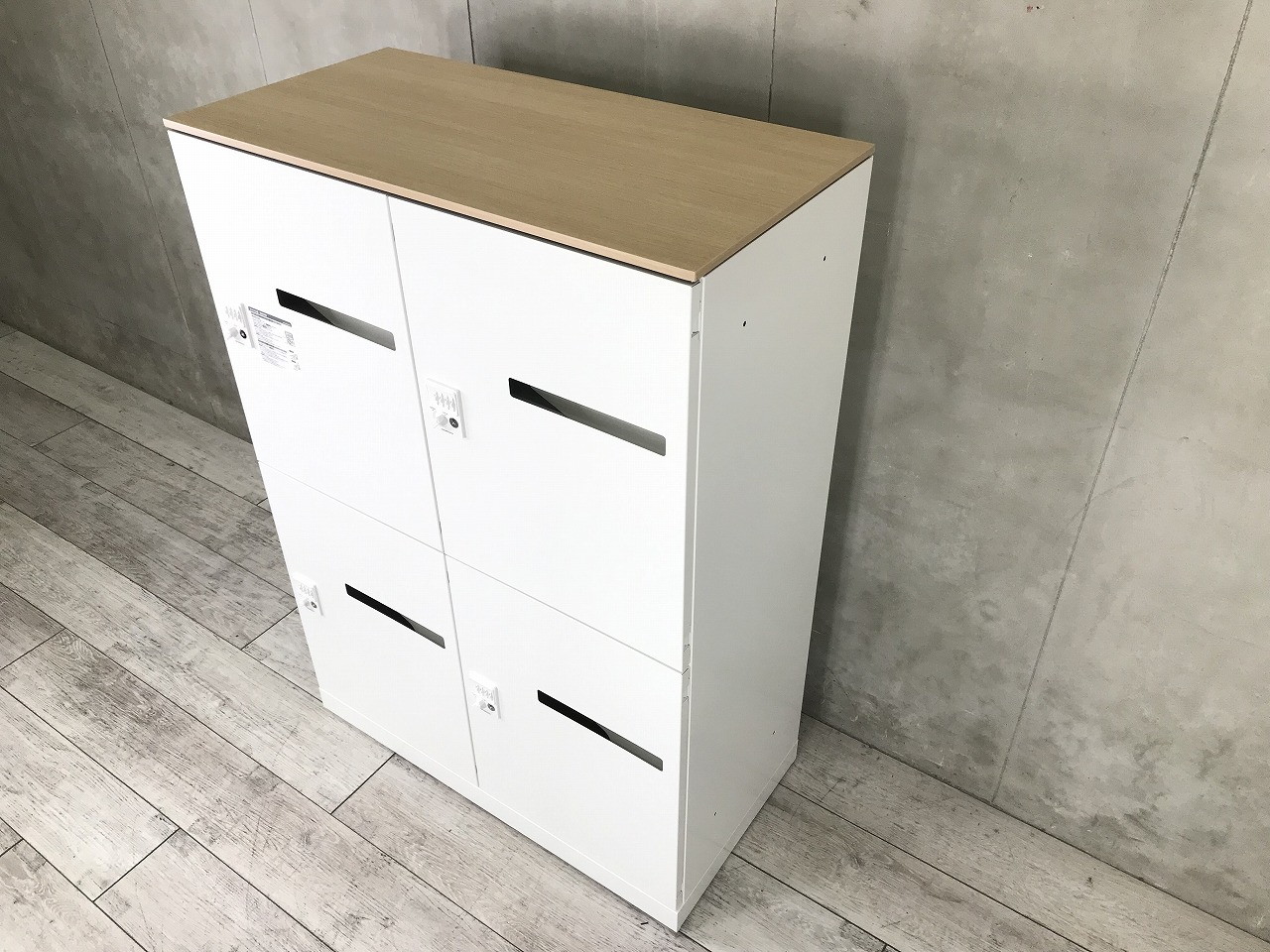 【商品入替のため、残り4台限り】オカムラ製 レクトライン ホワイト 4人用 投函口有り ダイヤル錠 ナチュラル木目調天板 フリーアドレスオフィスの必需品! ダイヤル錠式で鍵の持ち運び要らず! 4人用パーソナルロッカー!!※非常解除キーはついていません