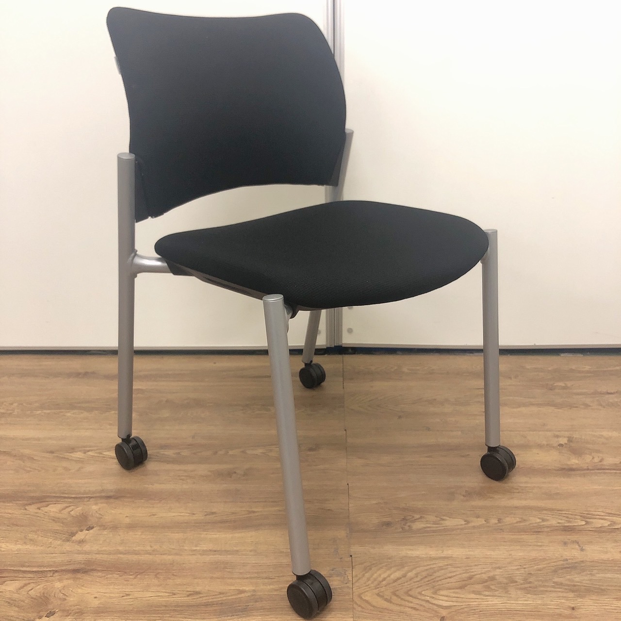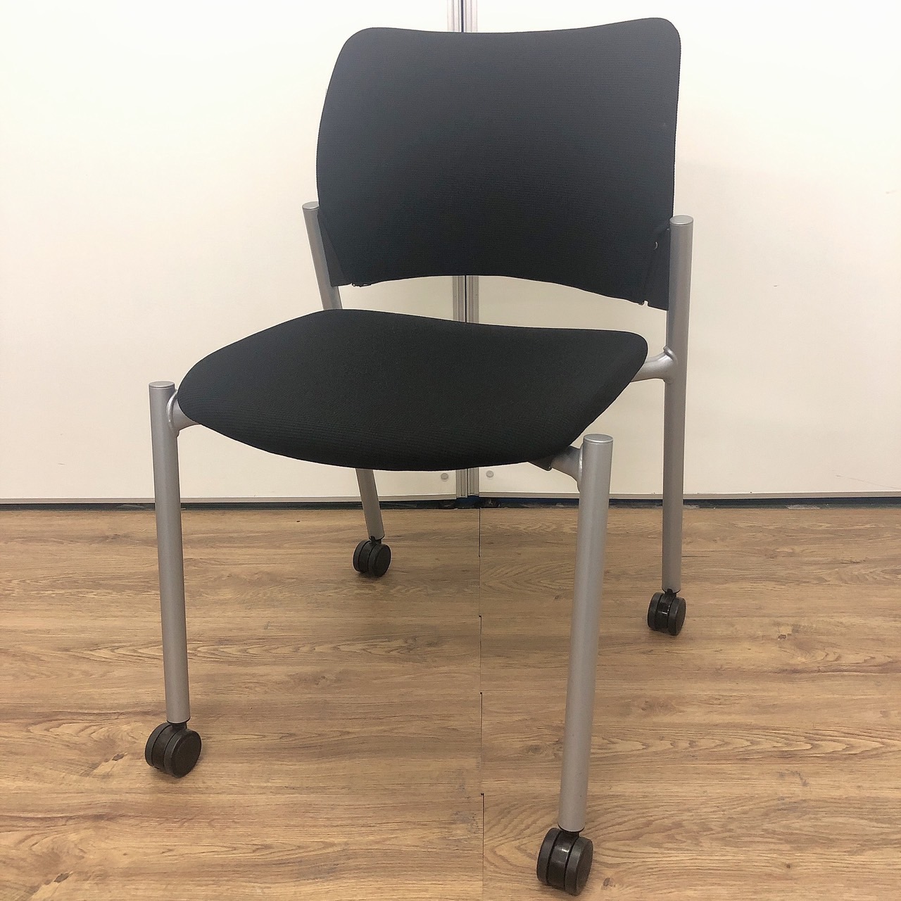 【4脚セット】スタッキングチェア キャスター付き オカムラ okamura ブラック 布張り 会議 ミーティング 研修 セミナー向け- 大阪梅田本店