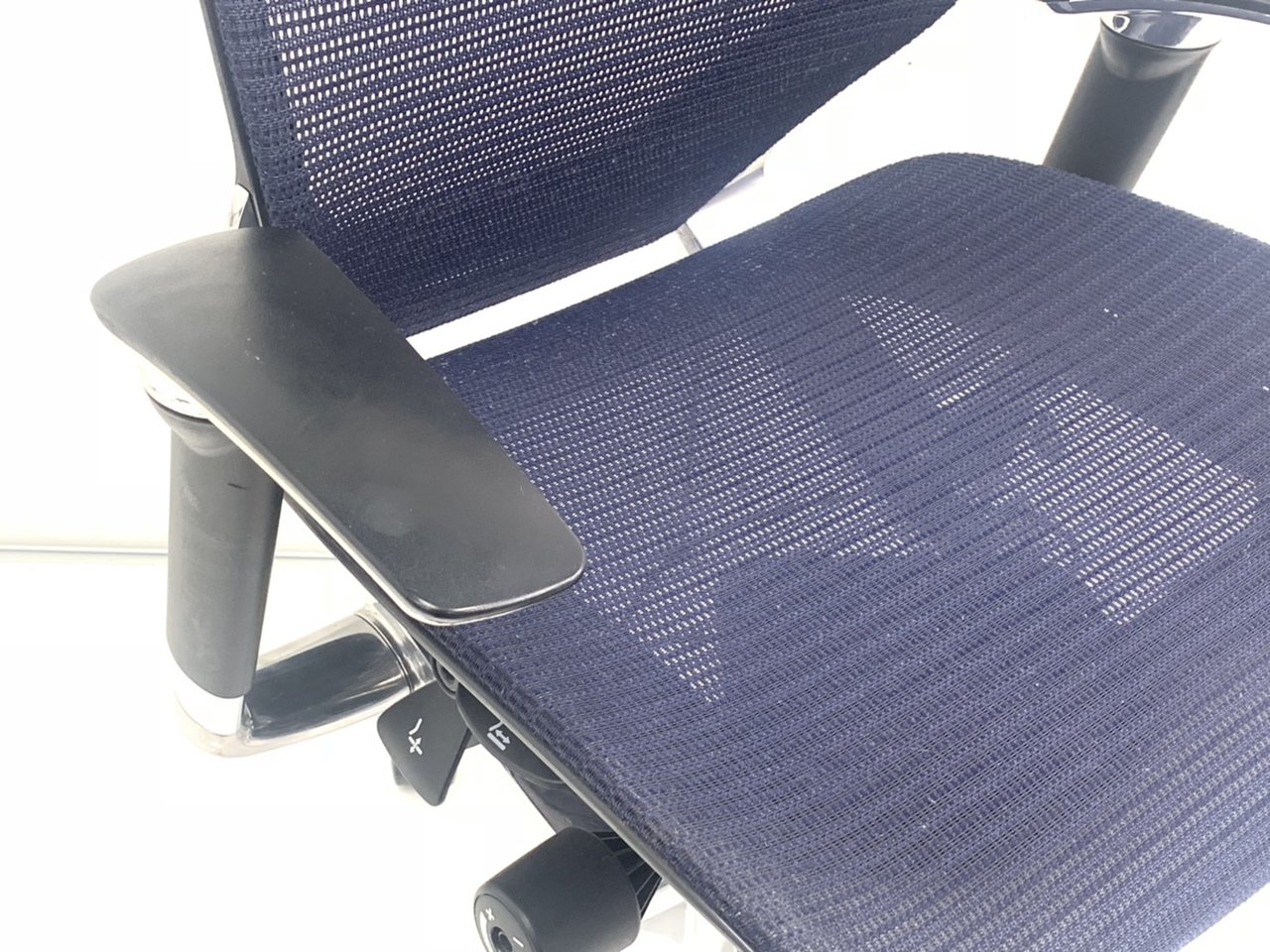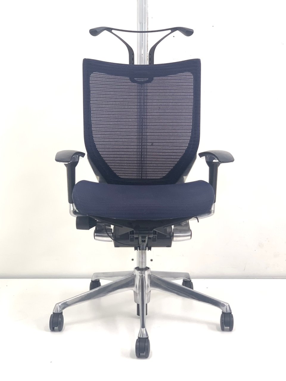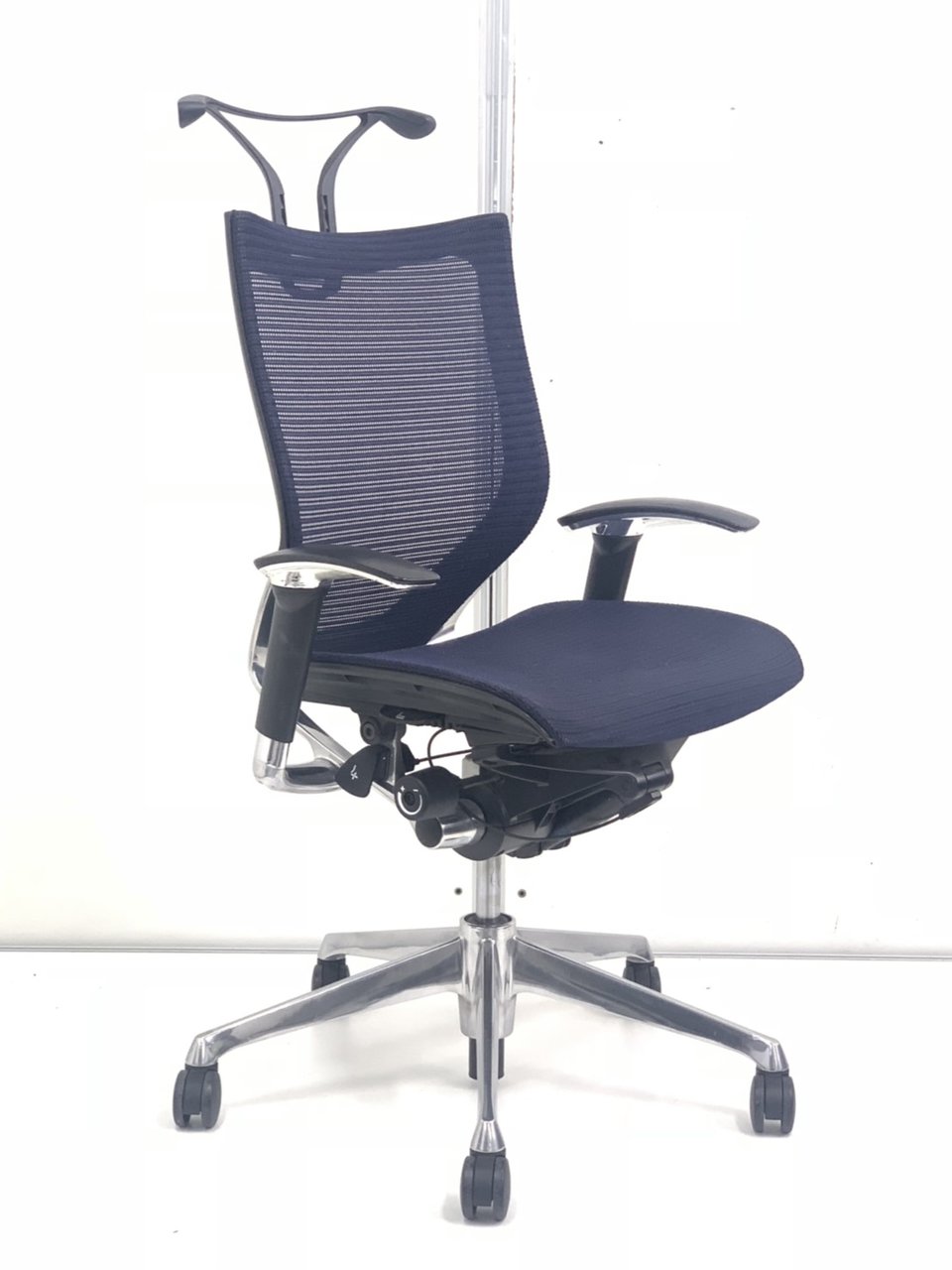 在宅勤務にもおすすめ!オカムラ製 バロン(Baron)ネイビー色 座面メッシュ/背面メッシュ ポリッシュフレーム- 春日部・越谷店