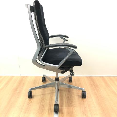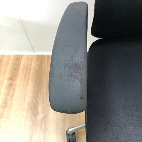 ※ひじ掛け部分に使用感ありのため、特価!【オカムラの最上級モデル!高級感と機能性を融合させたチェア!】■ハイバック 肘付き 背・座クロス張地(スエード調) 固定肘 ※サイド剥がれ有り ランバーサポート付き ブラック/オカムラ/デューク