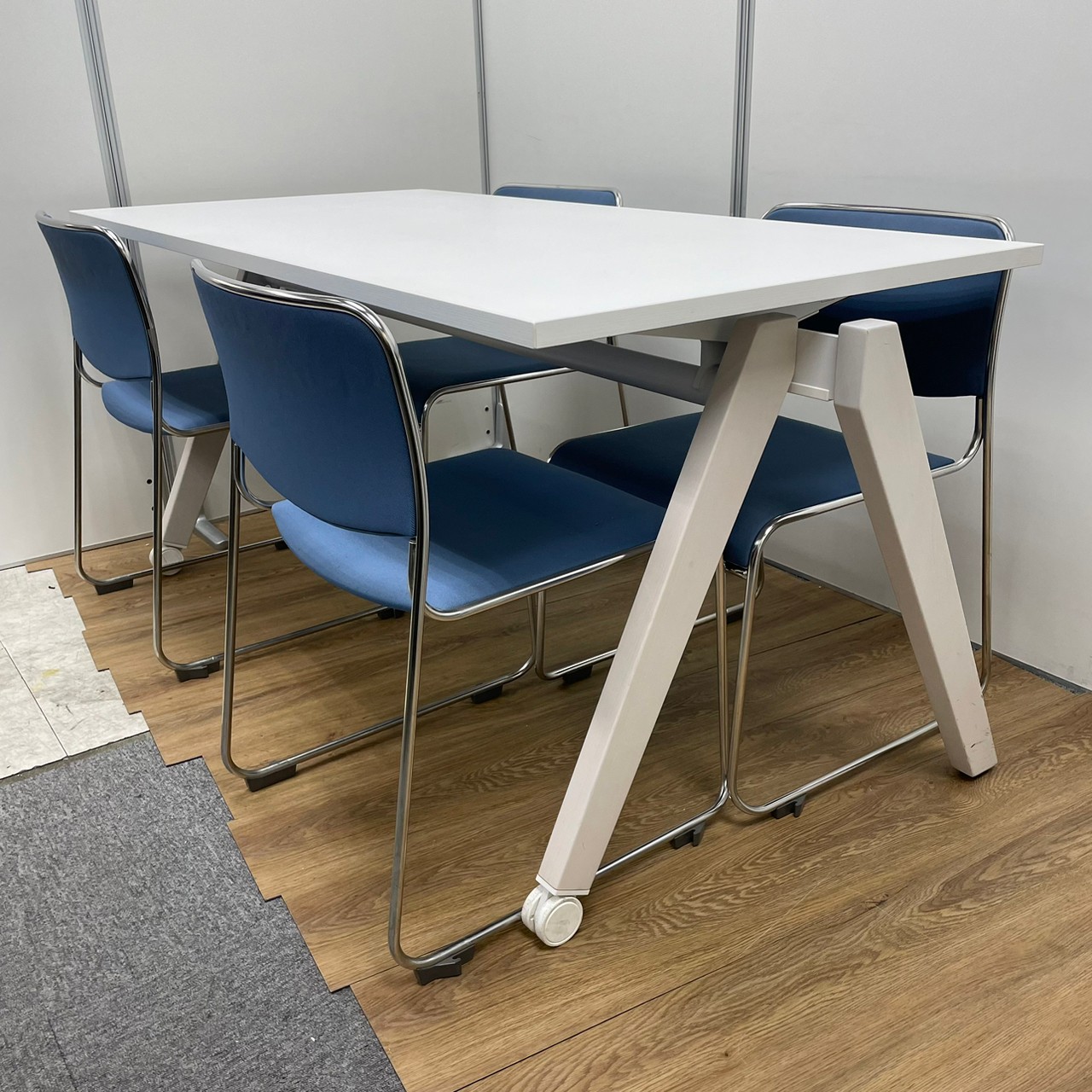 【サイドスタックテーブル+チェアセット!!】【チェアは4脚セット!】コクヨ製です!!【スタッキングチェア】【京都・滋賀・大阪】- 京都東寺店