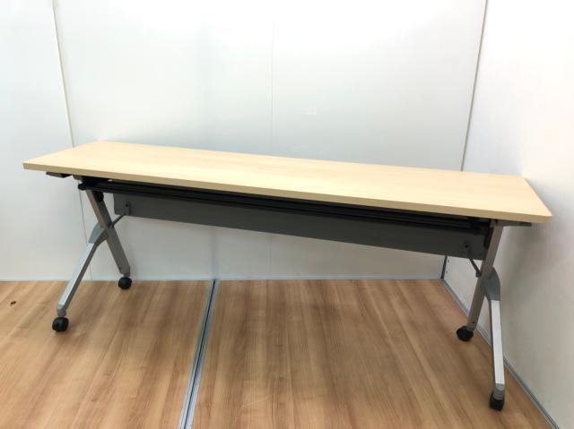 【W1500の折り畳みテーブルが入荷!】◆オカムラ/フラプター ナチュラル 木目 サイドスタックテーブル 収納 中古 博多 天神 九州最大級 オフィスバスターズ