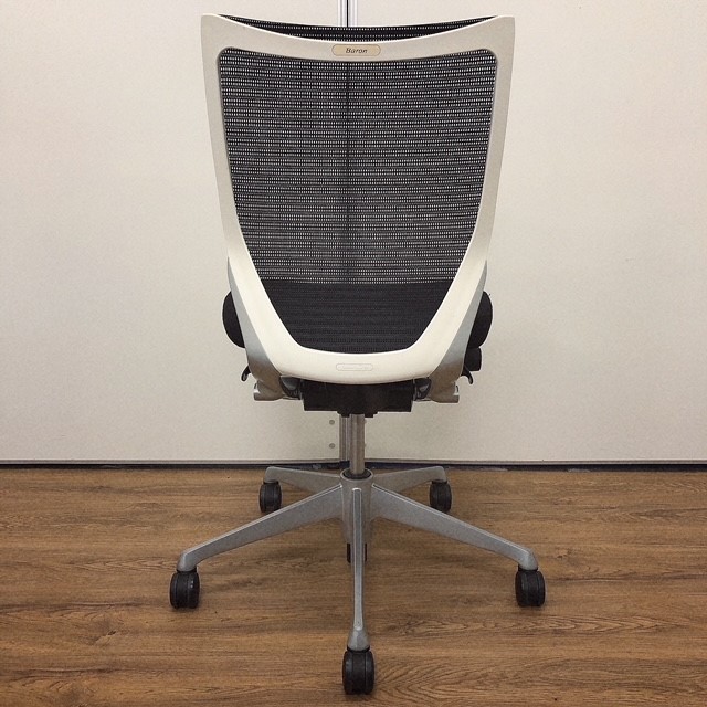 発売当時、既に人気を博していたオカムラの高級チェア、コンテッサから手元で座高調整ができるスマートオペレーション機能を取り除くなどしてリーズナブルにしたのがバロンです。その際に少しだけコンパクト化されました。そのことが、日本人の体格、日本のオフィス、家庭環境に適し、国内で多くのシェアを獲得する要因の一つになったのではないかと思います。