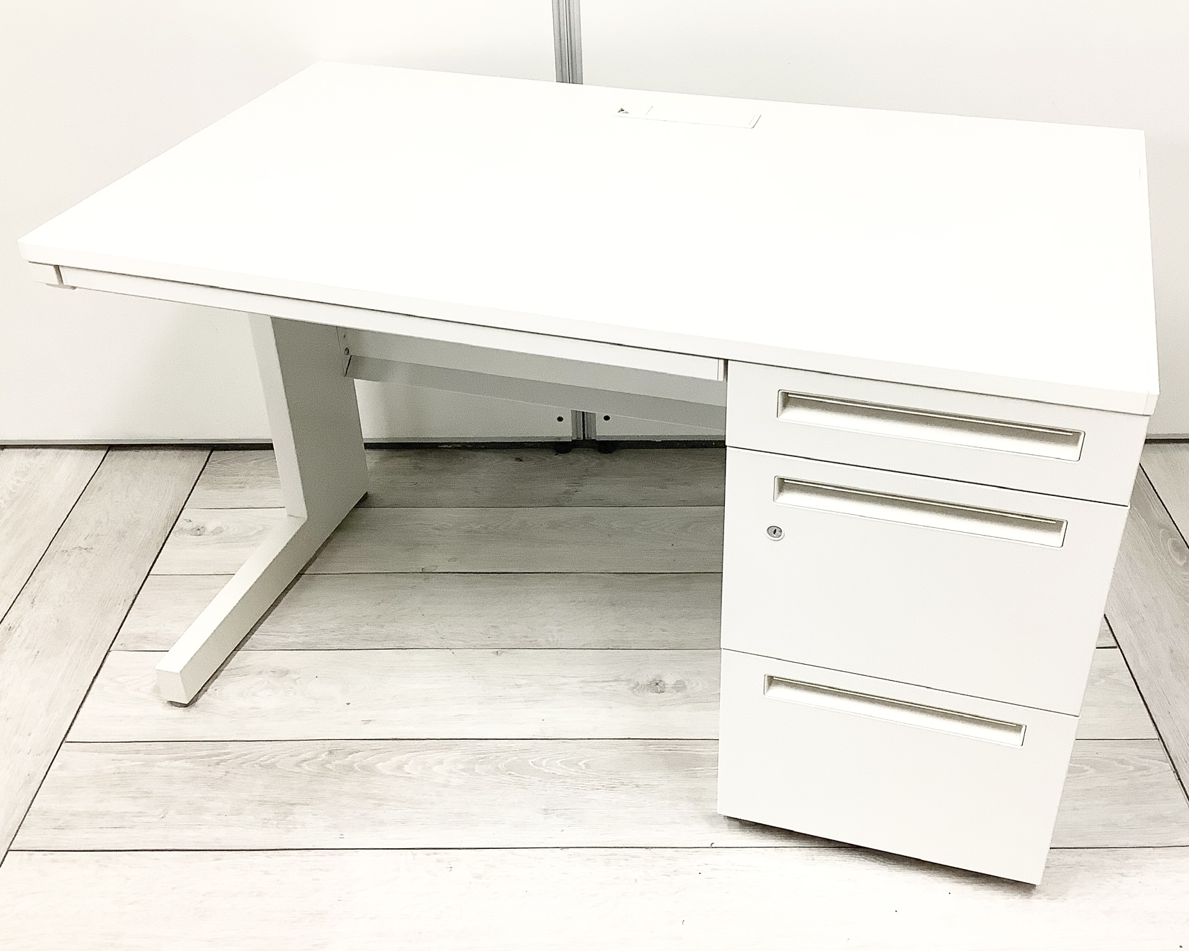【幅1200㎜の大人気片袖机が入荷いたしました! シャープなデザインで人気! オフィスと言えばの必需品!】■ウチダ(UCHIDA)製 スカエナ(SCAENA)シリーズ 片袖机 横幅1200mm ■引き出し付き ■ホワイト