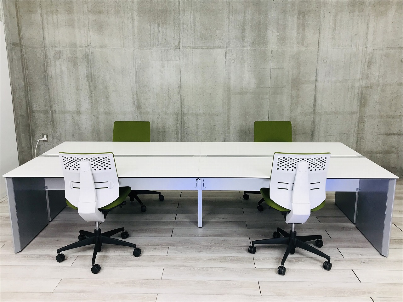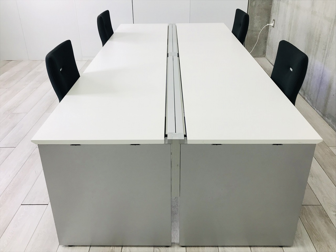 コクヨ製・『ワークヴィスタ』入荷!!【W3200】タイプ!4人使用で、一人使用サイズがw1600で使用でき広々お使い頂けます。解放感とコミュニケーションをアップさせてくれるデザイン!4人一組でチーム席としてのご使用も!!清潔感とスタイリッシュな組み合わせ!弊社使用欄【ホワイト】【脚シルバー】【FSW】- 全店共通商品