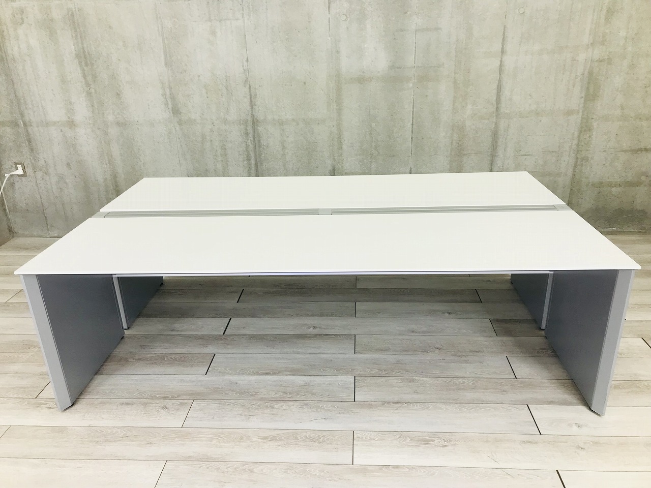 コクヨ製・『ワークヴィスタ』入荷!!【W2400】タイプ!4人使用で、一人使用サイズがw1200で使用でき広々お使い頂けます。解放感とコミュニケーションをアップさせてくれるデザイン!4人一組でチーム席としてのご使用も!!清潔感とスタイリッシュな組み合わせ!弊社使用欄【ホワイト】【脚シルバー】【FSW】- 全店共通商品
