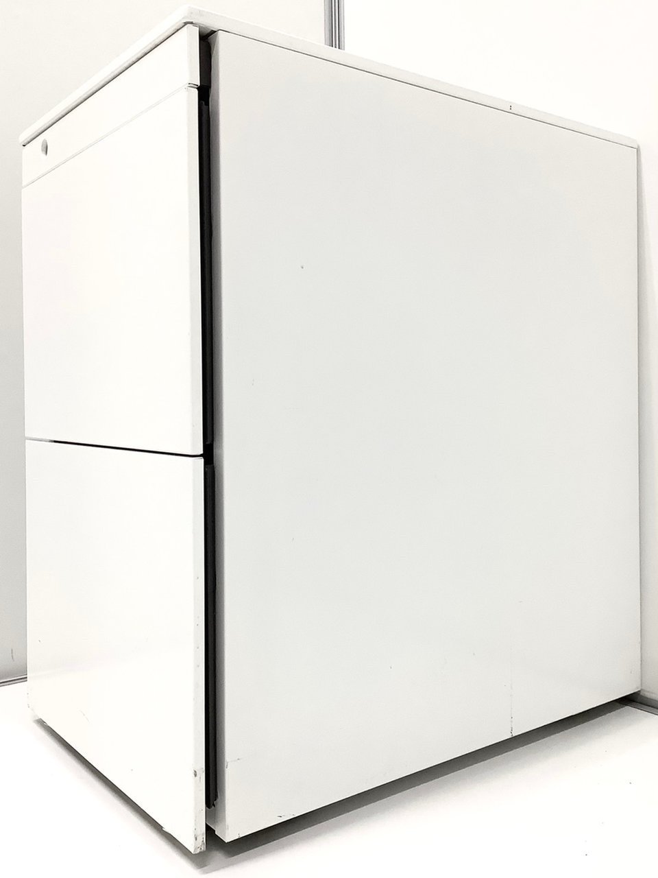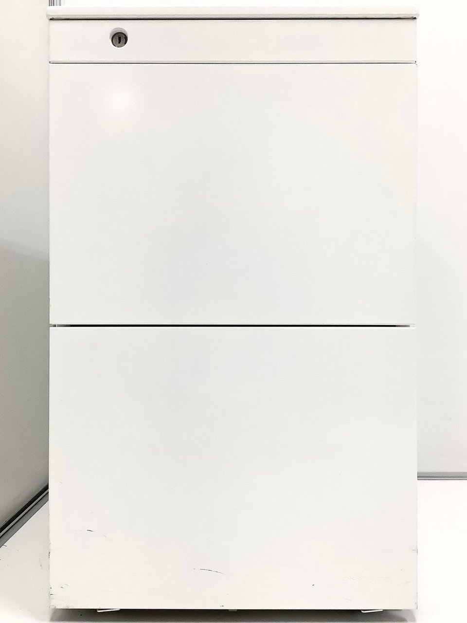 【正面に取っ手が無いフラットなデザイン!キャスター付でレイアウト変更がスムーズ!】■オカムラ(okamura)製 プロユニットシリーズ 3段ワゴン フリアド用ワゴン H650㎜ ■ホワイト ■シリンダー錠 ※キズ・塗装剝がれ有