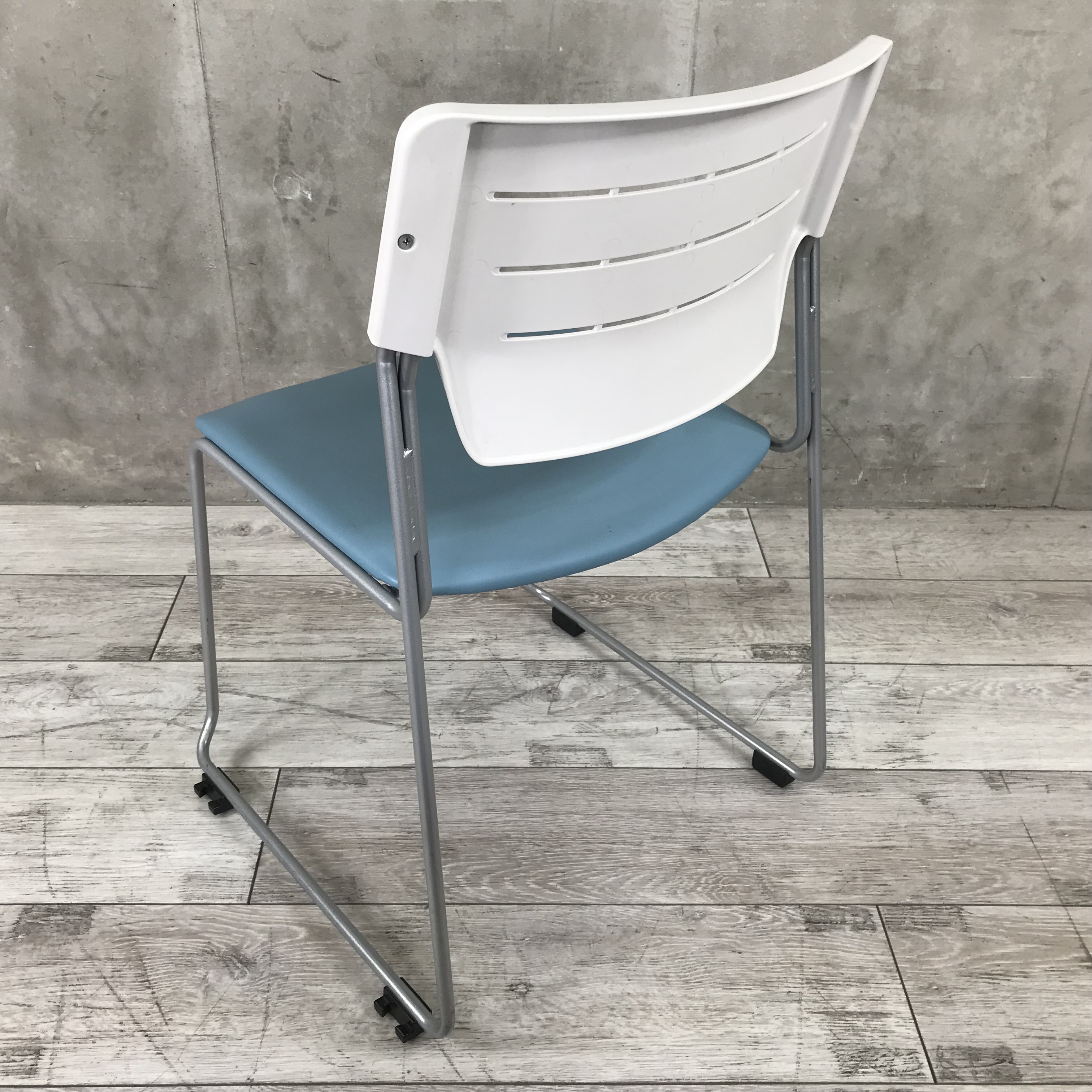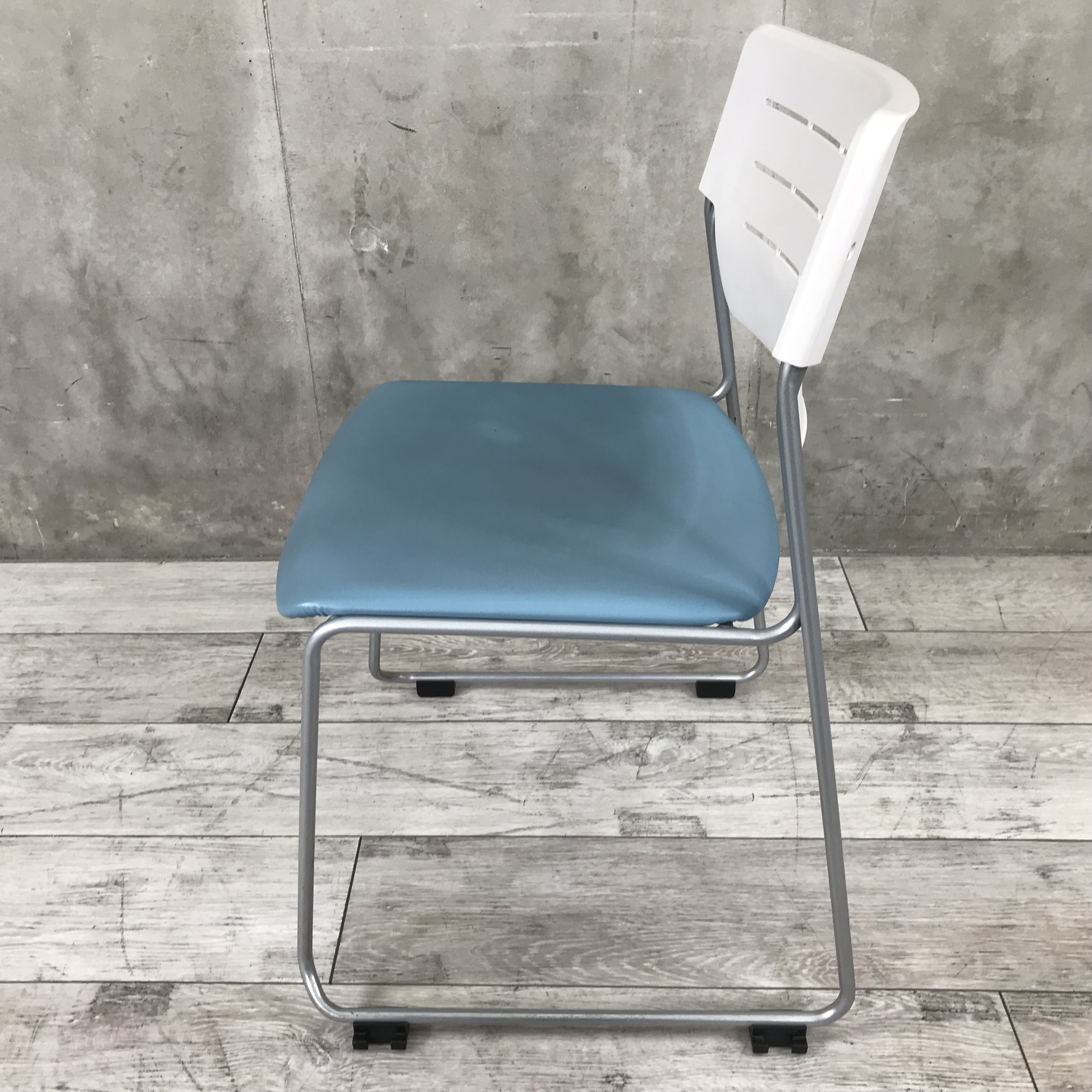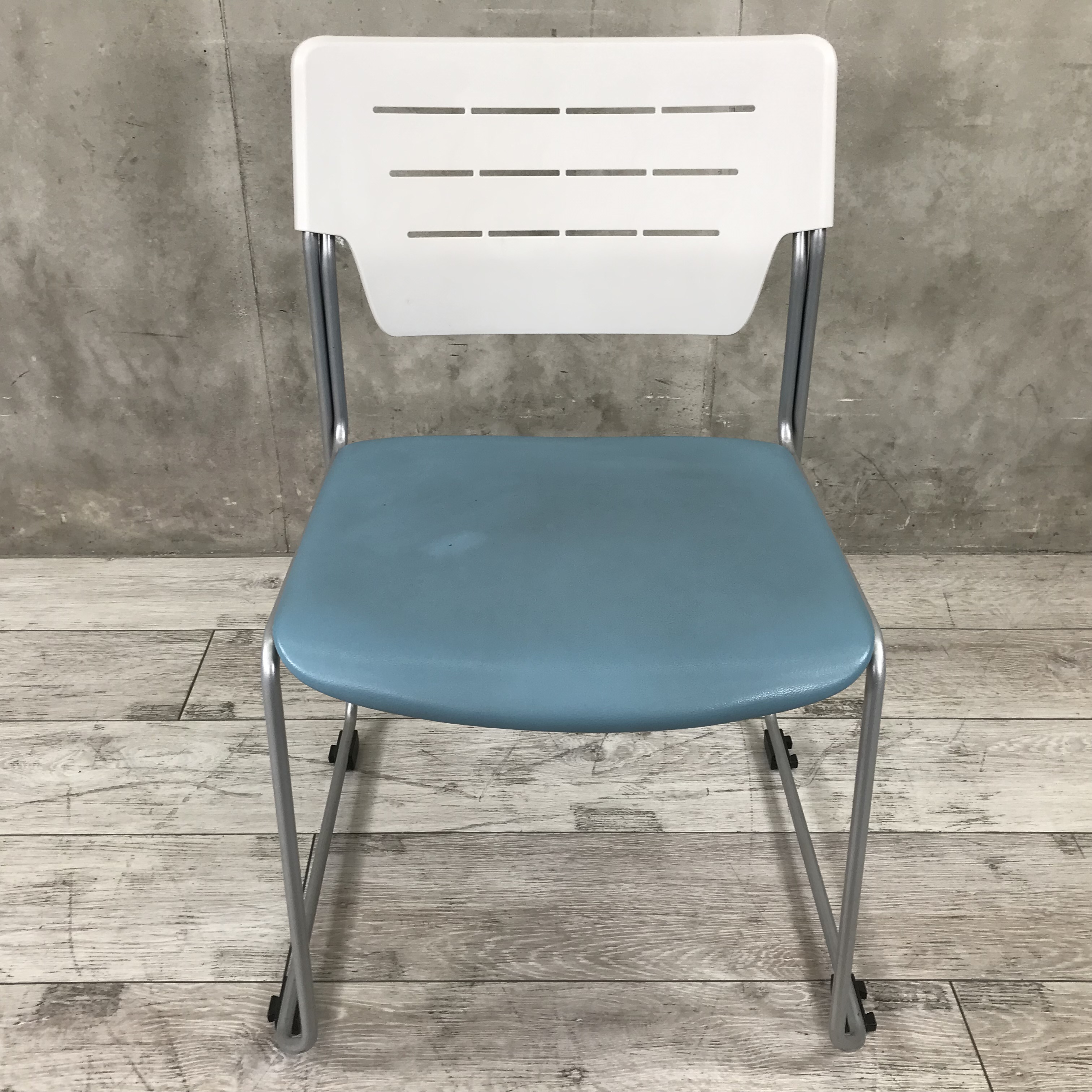 【値段で選ぶならコレ!】■イトーキ スタッキングチェア エレックシリーズ ターコイズブルー ■アルコール清掃も可能なビニールレザー仕様!- 品川・三田店
