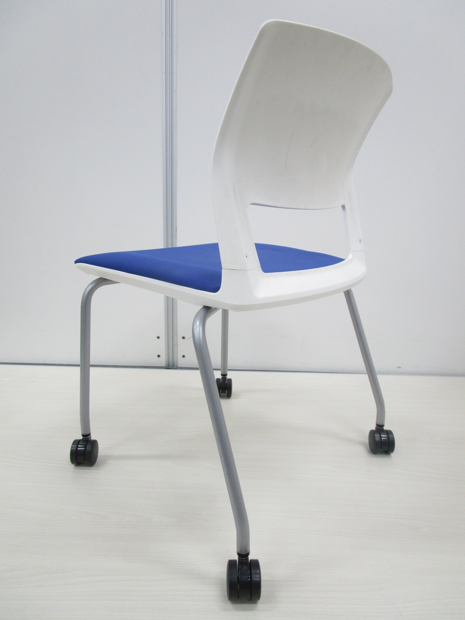【スイスイ動かせるキャスター付!】■コクヨ製 スタッキングチェア ブルー- 品川・三田店