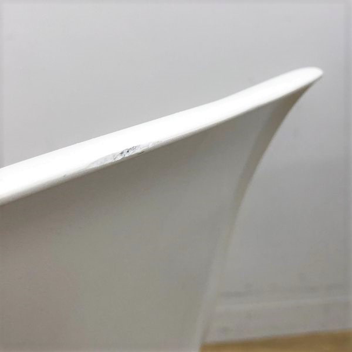 - かなり強い濃い黄ばみ・変色が商品全体にある。(例、座面・背もたれ、脚部等にある。)