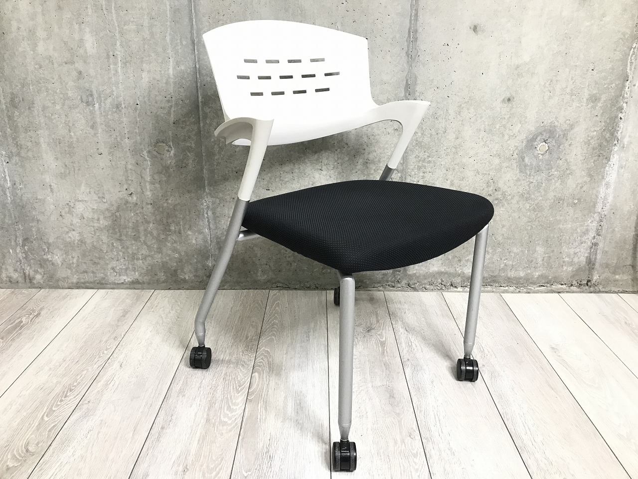 【12脚入荷!】すっきりしたデザイン!ホワイト・ブラックの人気ツートンカラー!急な来客・会議にも対応でき、使わないときは重ねて収納できます! ■イトーキ/カクタス/ブラック- 立川・八王子店
