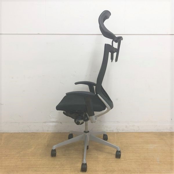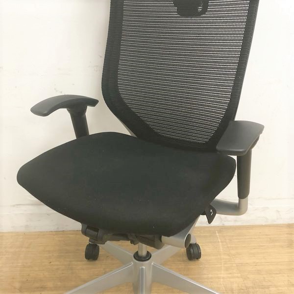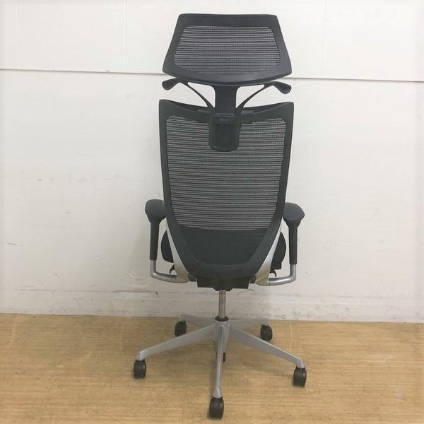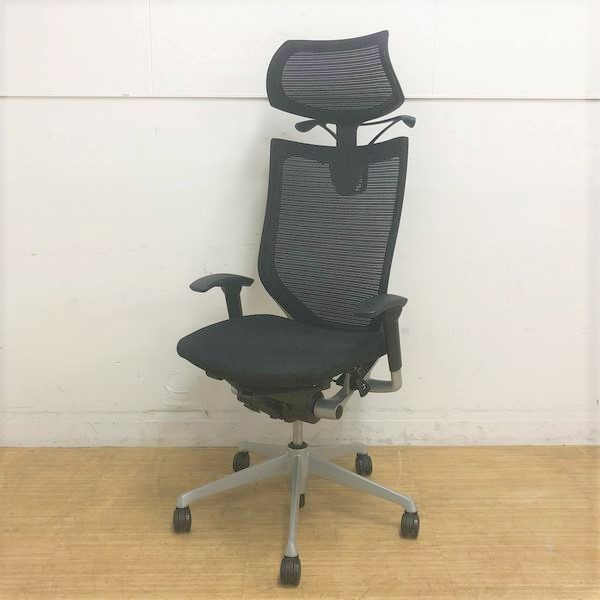【オフィスの執務室、会議室におすすめ!】■オカムラ(okamura)製 バロン(Baron)チェア 肘付き ハイバック ■背・座面メッシュ ■可動肘 ■ヘッドレスト付き ■ブラック【硬めの座面が大人気!国産メッシュチェアの代表格!】