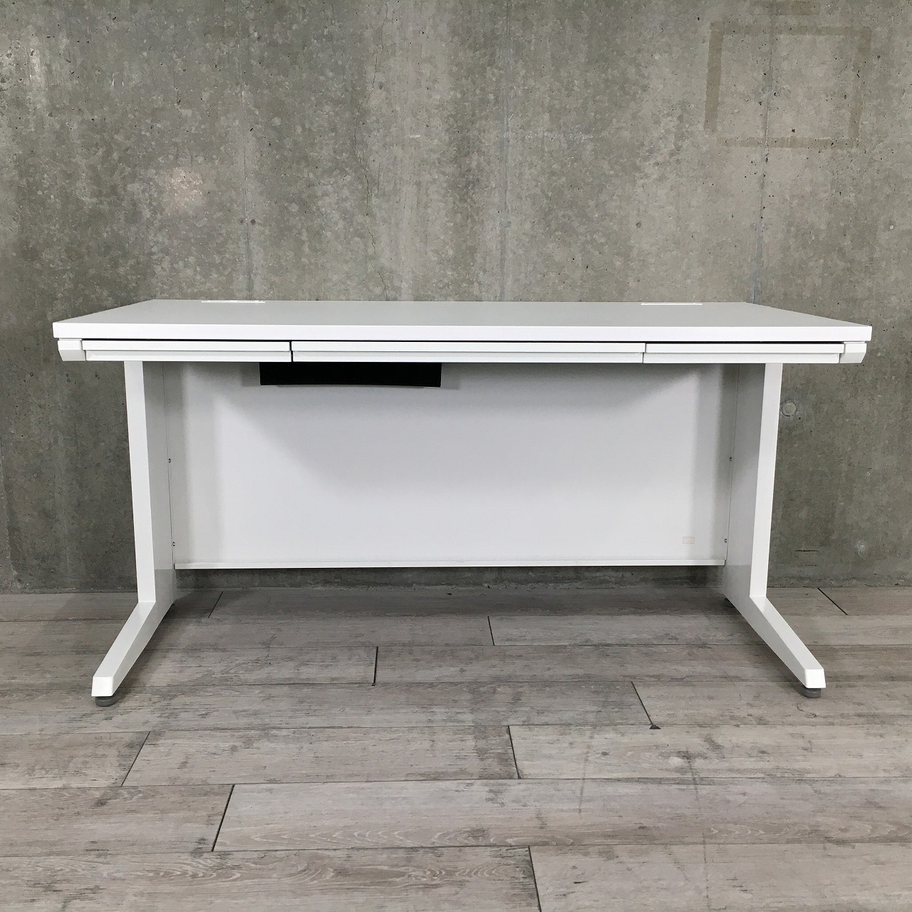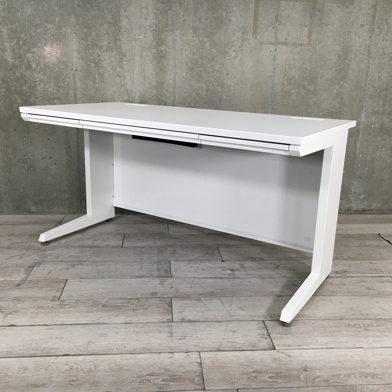 オカムラ アドバンス-Sデスク 平机 センター引出し付 人気のホワイト天板 ゆったりめのサイズのW1400 配線孔2カ所 ※樹脂部分に日焼けあり 【愛知・名古屋・豊田・静岡・浜松】