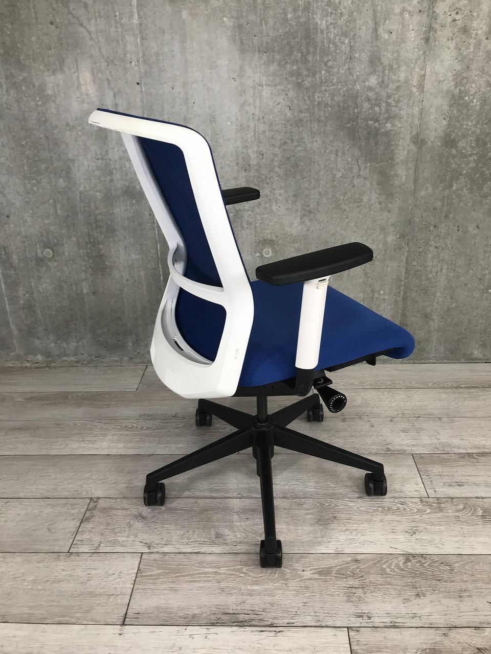 【6脚入荷】爽やかブルー&ホワイトフレーム⇒エルフィー(Elfie)シリーズ※肘掛け可動仕様◆内田洋行製- 東大阪店