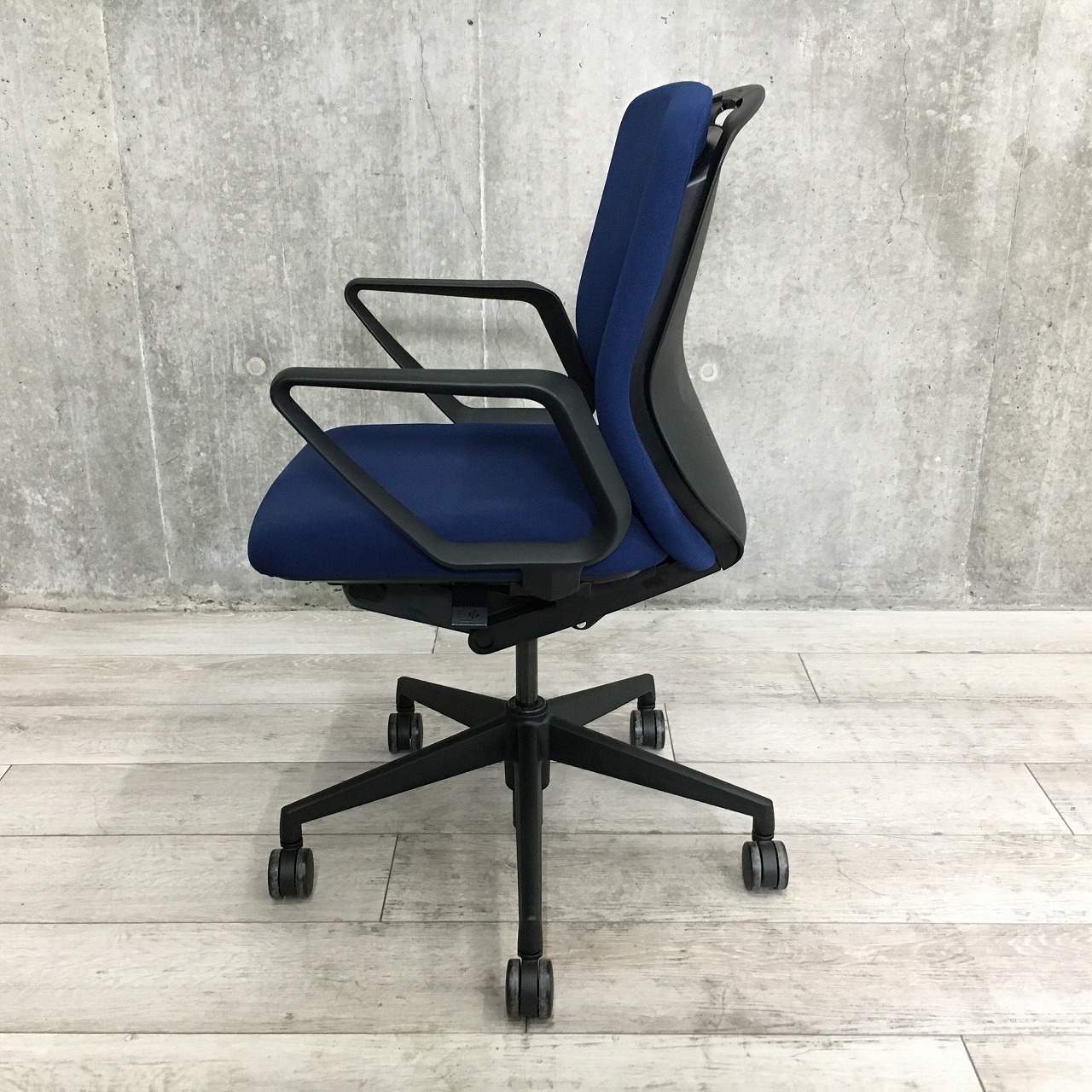 【定価約7万円】【柔らかさや美しさを感じさせる、知的でユニセックスなデザインのOAチェア!】■ウチダ(UCHIDA)製 クレネ (KRENE) 肘無し ミドルバック ■ハンガー付 ■ダークブルー×ブラックシェル【2503】弊社使用欄【A01005848】