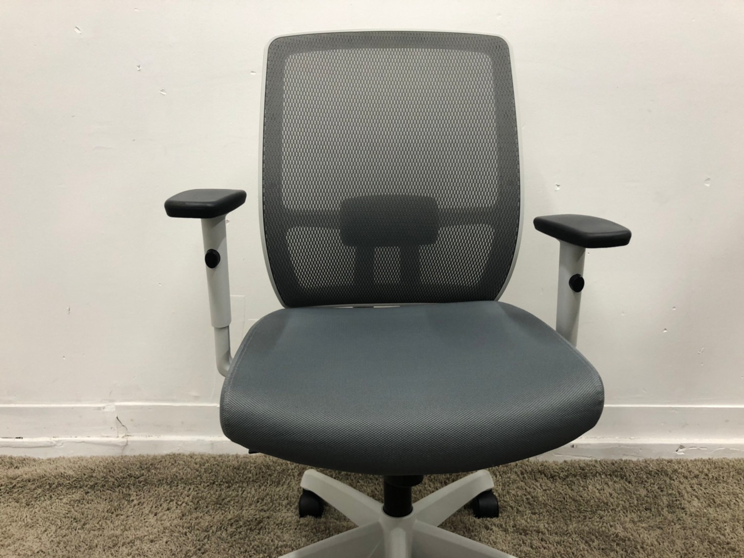 【高機能メッシュチェア入荷!】■プラス製 ビージェイチェア 可動肘付 グレー【PLUS BJチェア】- 川崎店