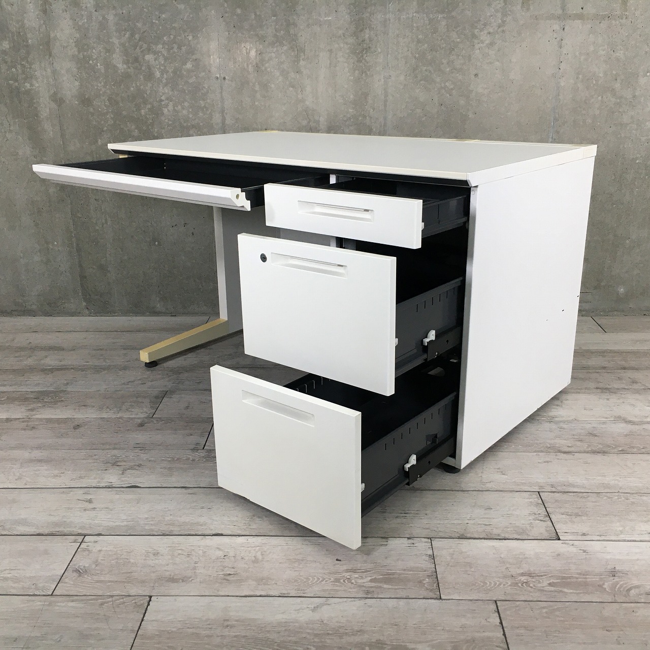 コクヨ iSシリーズ 片袖机 W1200の定番サイズ ホワイト 鍵付き シリンダー錠【愛知・名古屋・豊田・静岡・浜松】