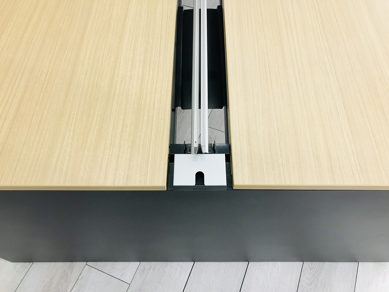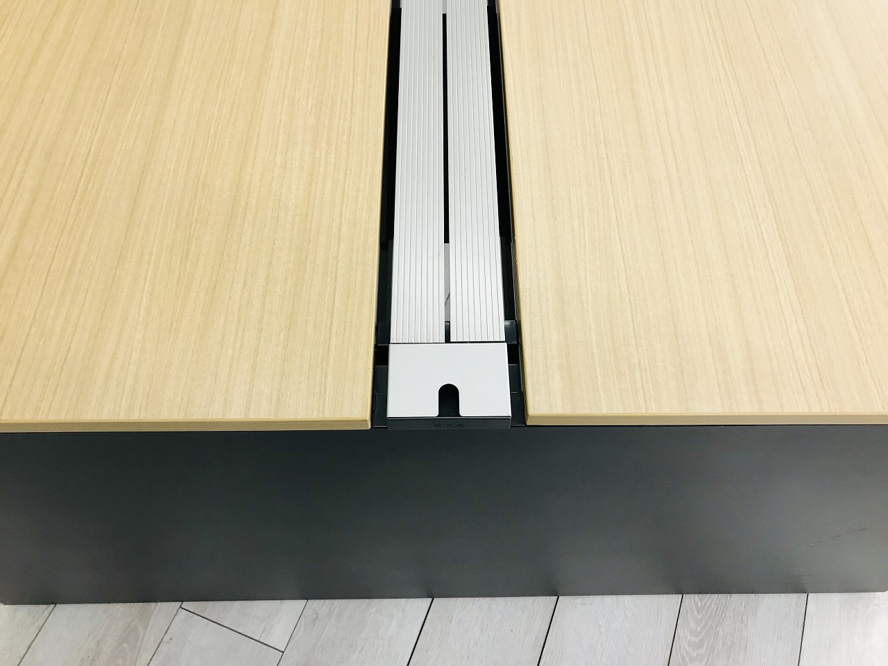 天板下のどこにでもワゴンを置けるワゴンフリーと天板目地は「ねむり目地」となっており、座る場所を選ばず