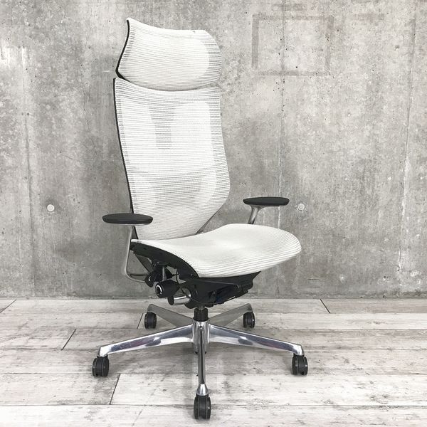 レア商品!強そうな名前通りの座り心地です!座面メッシュのため蒸れずに快適! ■オカムラ/アトラス/ベージュ ヘッドレスト付/ランバーサポート付- 立川・八王子店