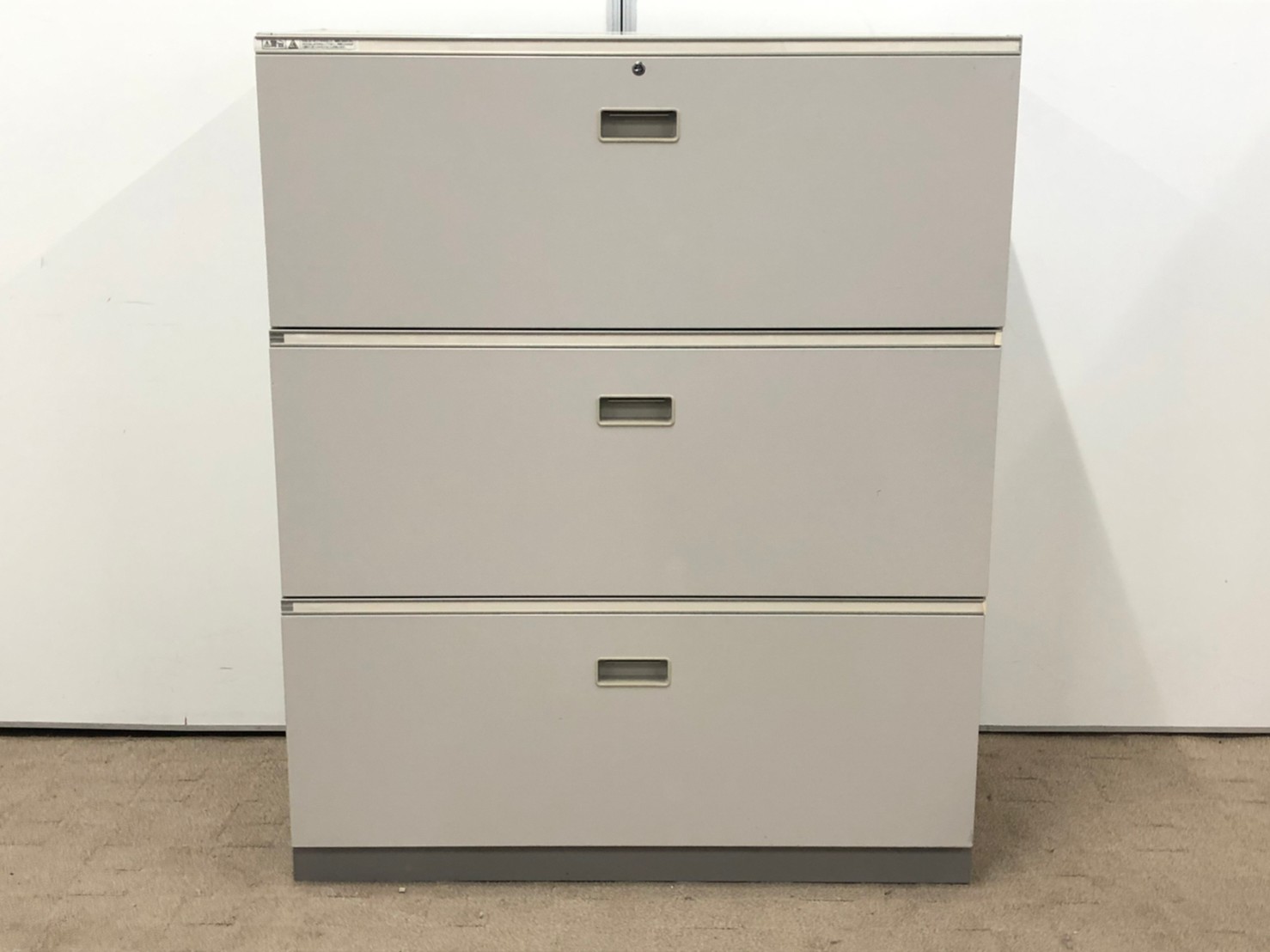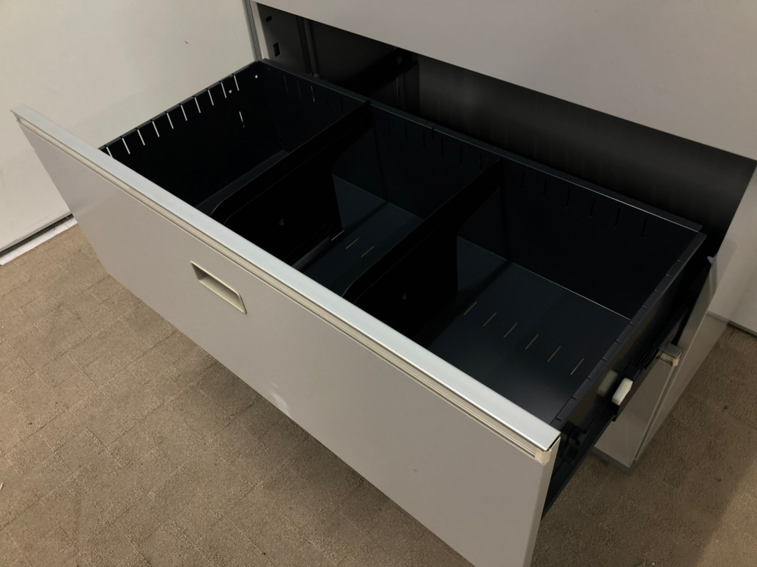 こちらは引き出しタイプの3段ラテラル書庫です。