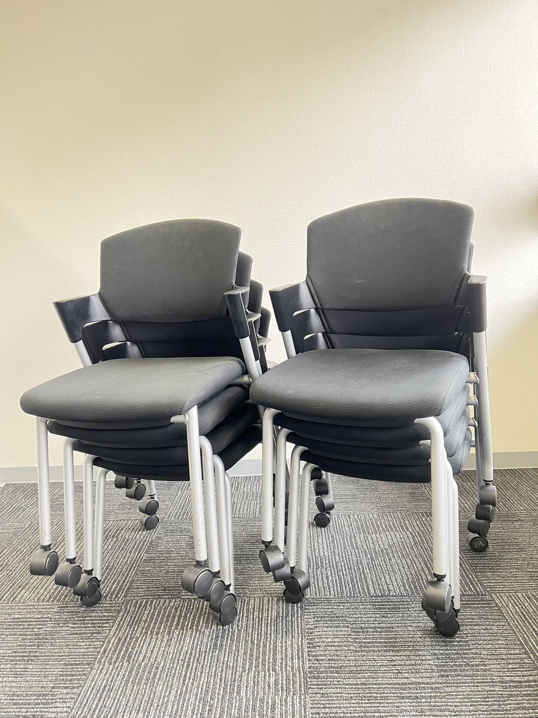 【6/16・8脚入荷予定!】【シンプルスマートなスタッキングチェア!分厚いクッションで長時間でも快適な座り心地!】■コクヨ製 プロッティ スタッキングチェア 肘付ミーティングチェア ■固定肘 ■キャスター付 ■ブラック ■背面樹脂 オフィスバスターズ梅田本店