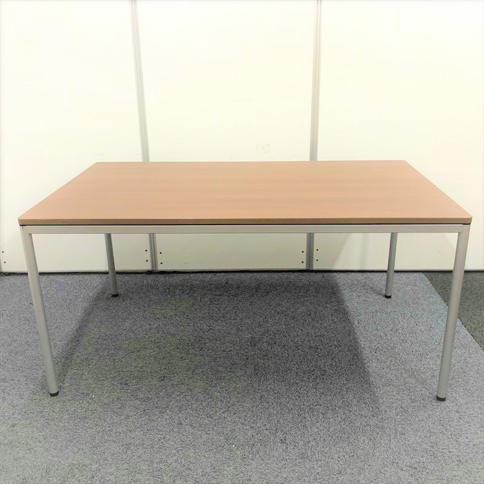 【1台限定】【W1500mm】オカムラ製 ミーティングテーブル シックなブラウンが高級感のある雰囲気を創ります。 4本脚 会議テーブル- 東大阪店