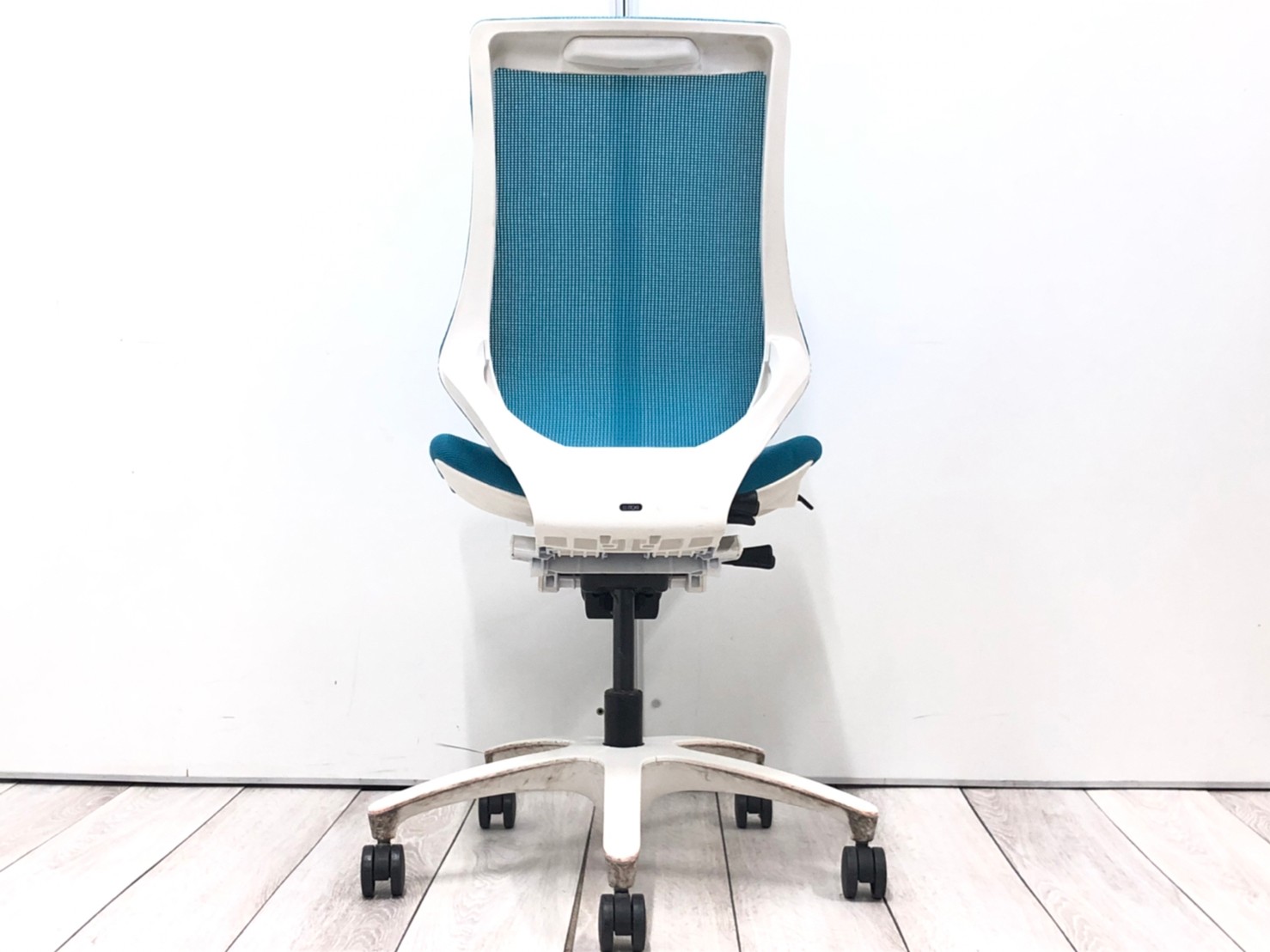 スタイリッシュで座り心地も抜群!フィット感の良い高機能チェア入荷! ■イトーキ/エフチェア(f)/ストロングブルー×ホワイトフレーム 肘無ハイバック ■メッシュ背面