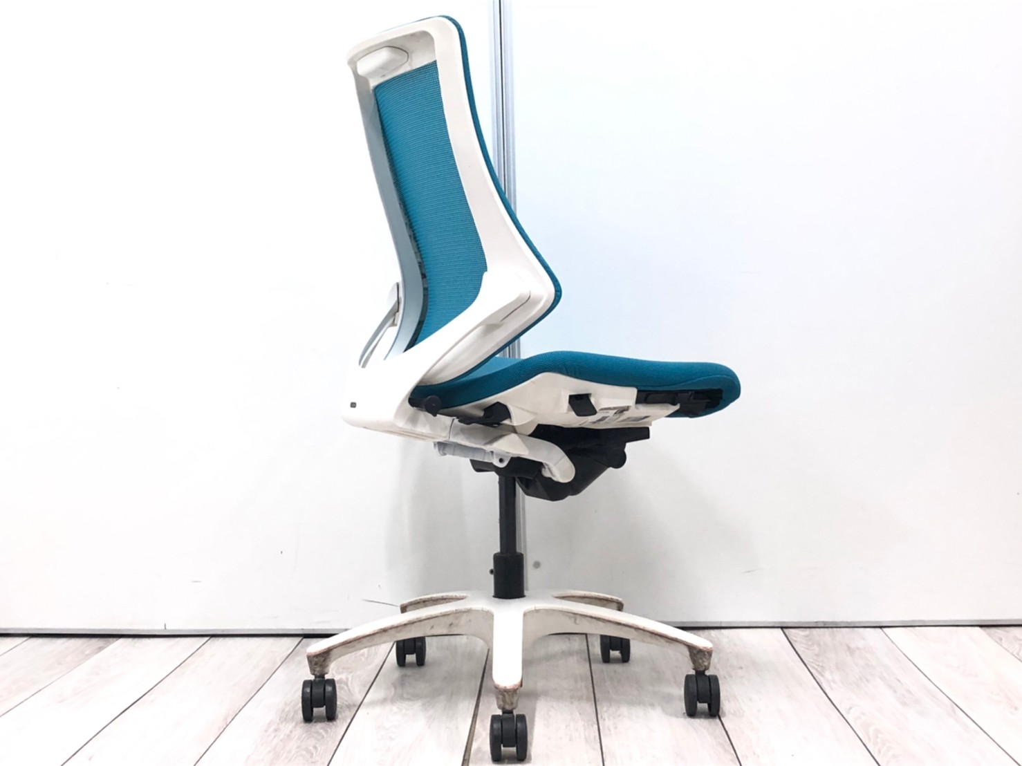 【高機能で座り心地も抜群!姿勢の変化にフレキシブルに対応】■イトーキ(ITOKI)製 エフチェア ハイバック 肘無し ■可動肘 背面メッシュ ■ハンガー付き ■ストロングブルー × ホワイトフレーム