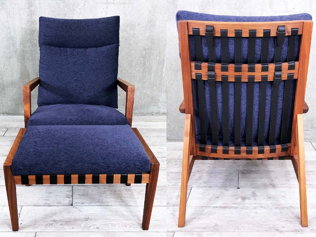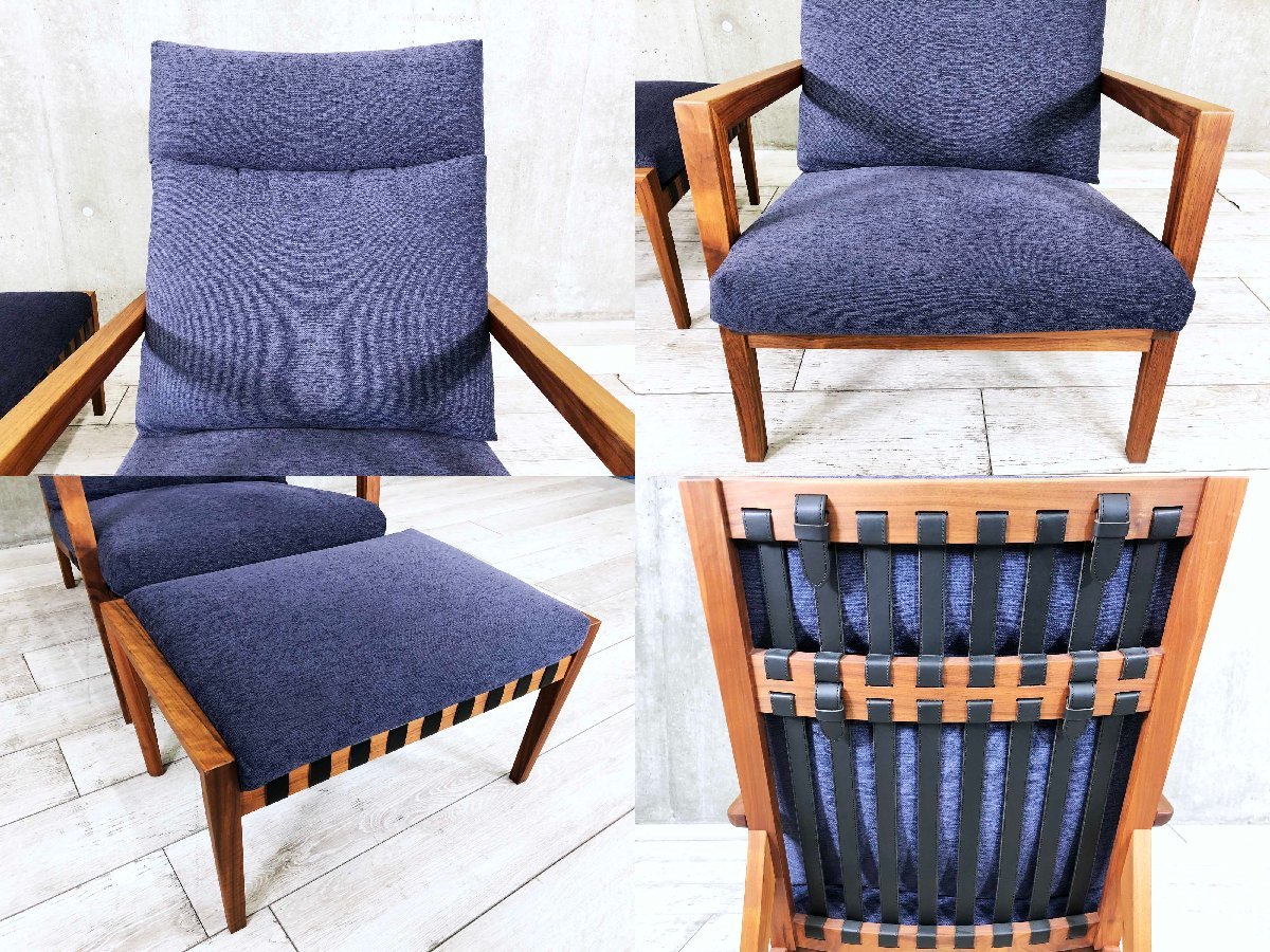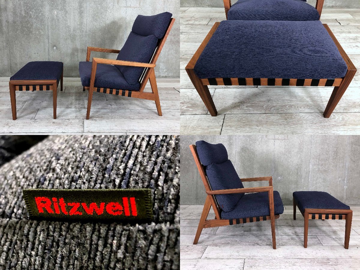 【展示品】Ritzwell / リッツウェル BLAVA / ブラヴァ ハイバックイージーチェア オットマンセット ネイビー ウォルナット- デザイナーズ家具センター