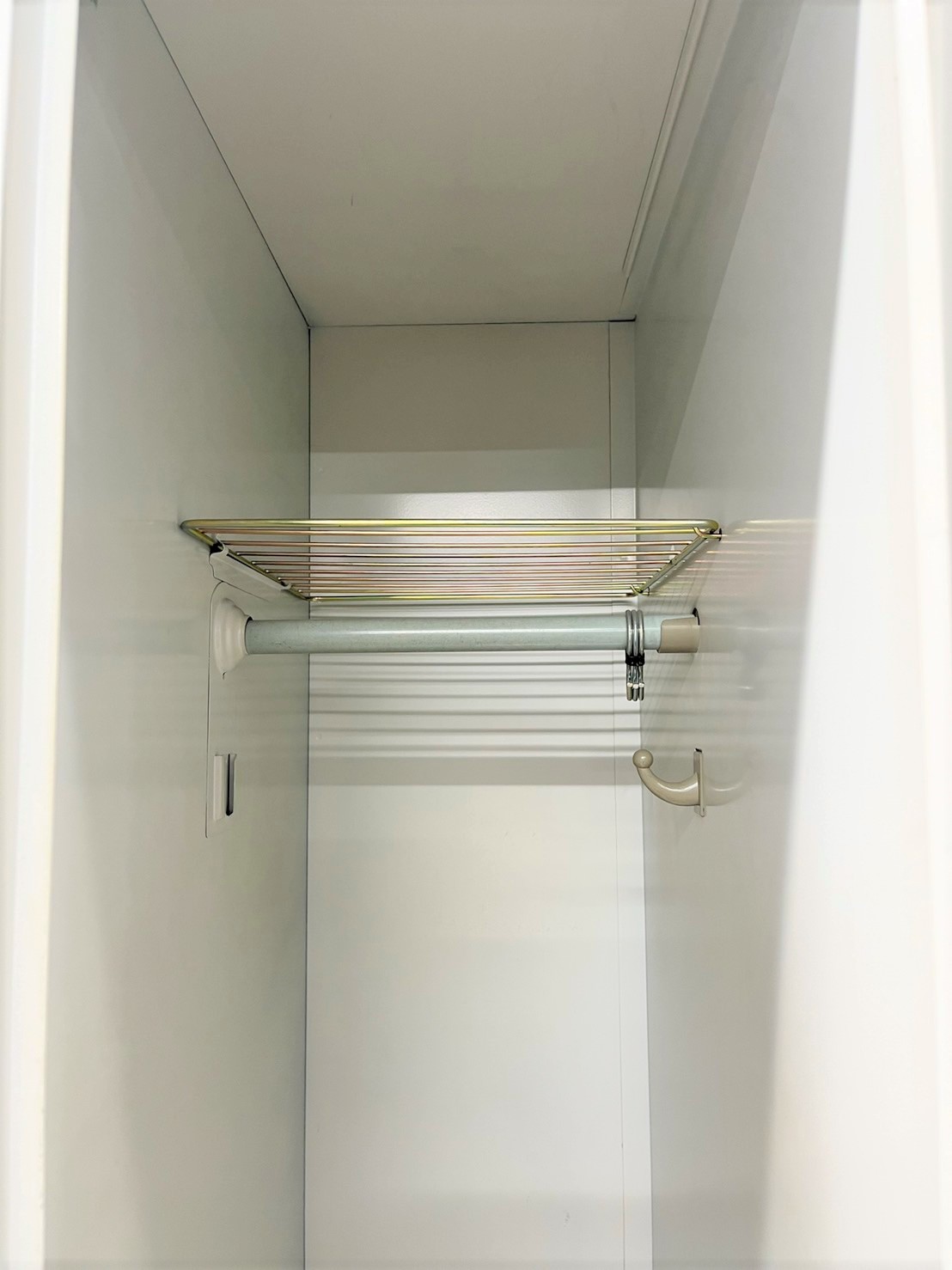 - 完備鏡、ネクタイ掛け、傘立て、網棚、フック等が全て完備されている。