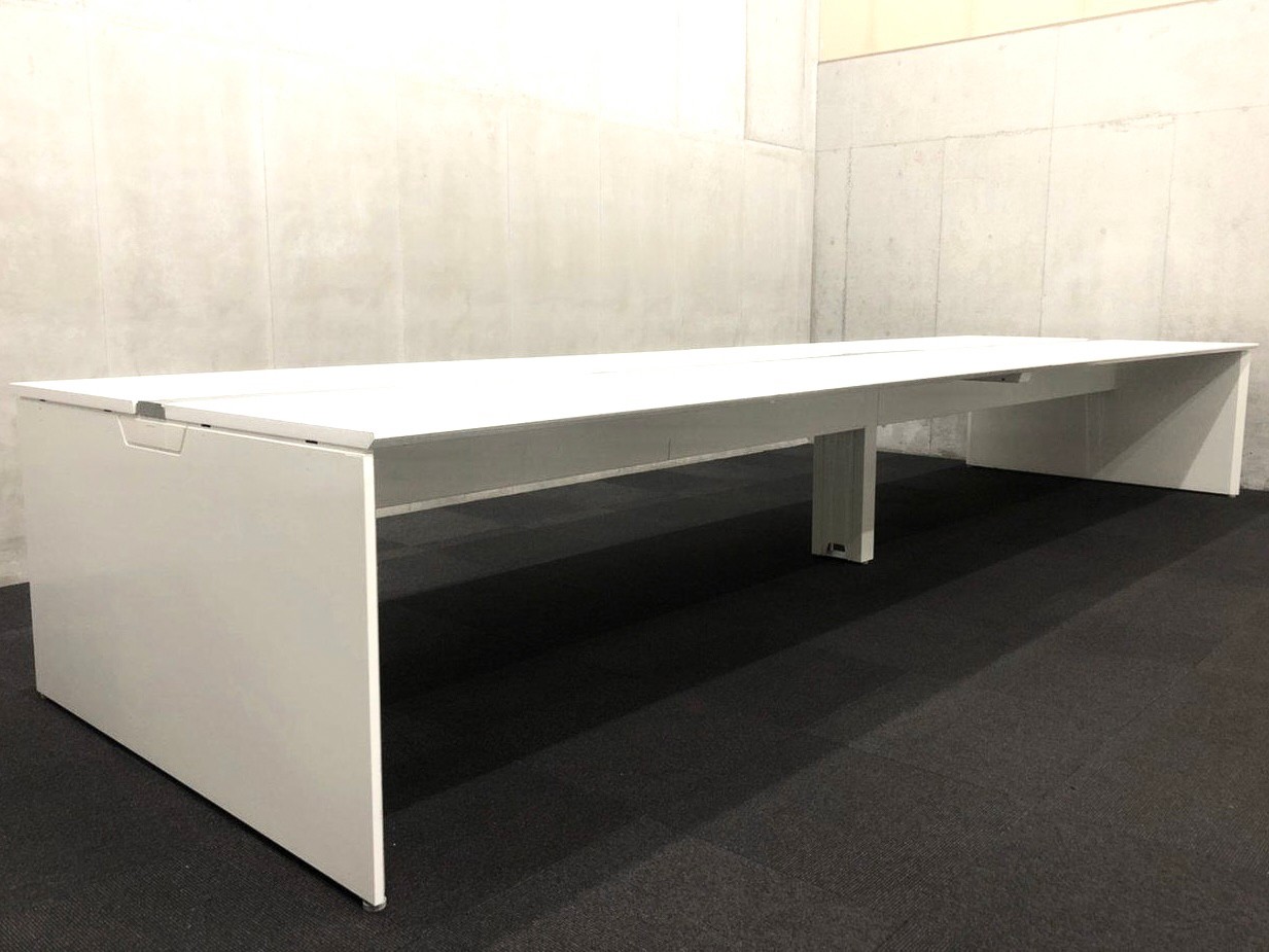 【見た目がおしゃれなフリーアドレスデスク】幅3600㎜ 奥行1400㎜ 高さ720㎜ オカムラ/プロユニットフリーウェイ/天板:ホワイト/脚:ホワイト 中古家具