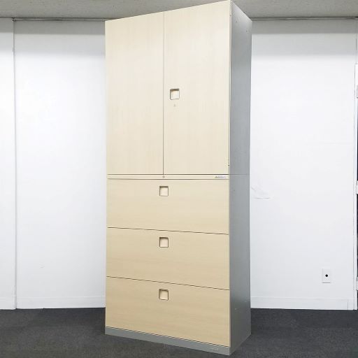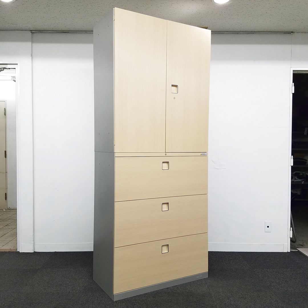 【中古】 レクトライン 4B313F ZB41/4BG3WG ZB41 オカムラ/okamura ハイキャビネット/両開き+3段ラテラル 392535