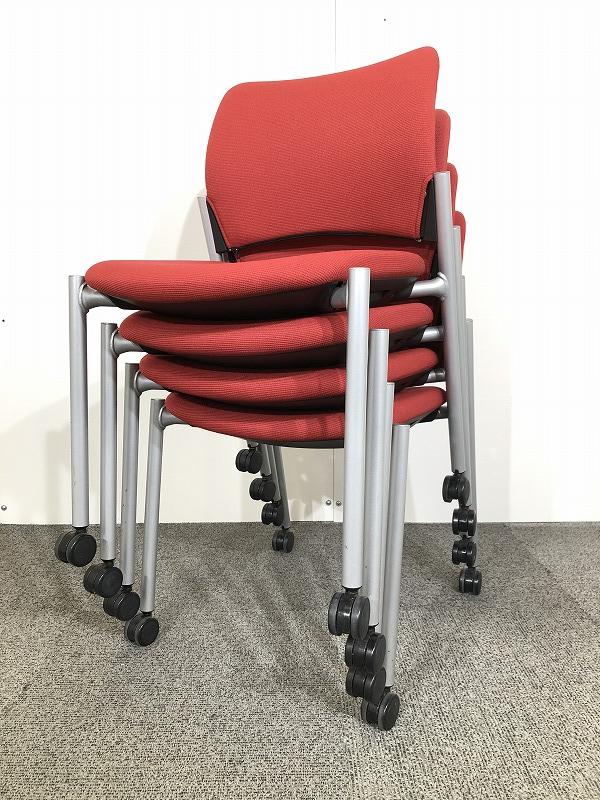 【関西倉庫在庫】国内メーカーオカムラ製 キャスター付き 省スペースで保管ができるスタッキングチェア 弊社使用コード【A00881724】- 全店共通商品