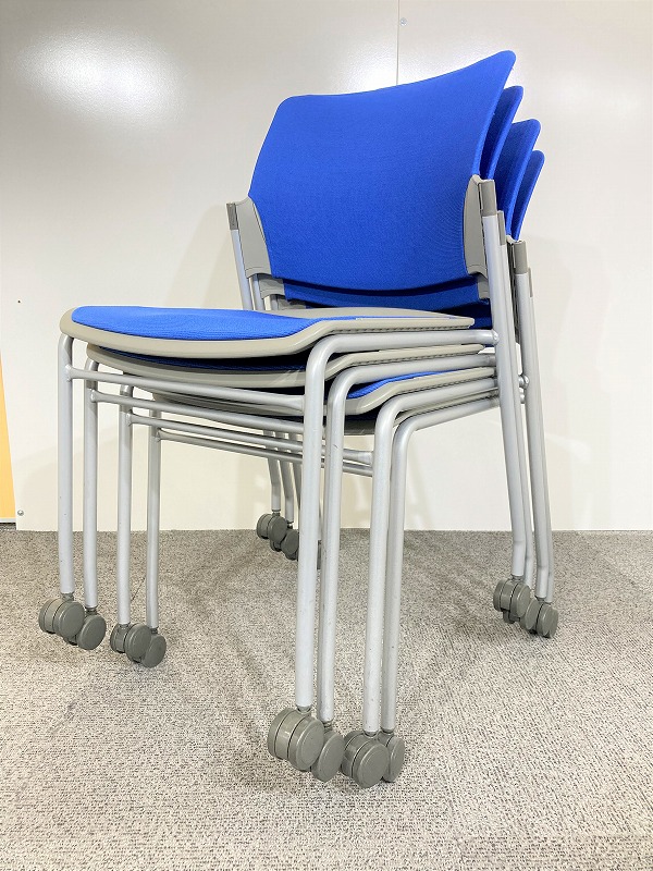 【関西倉庫在庫】国内メーカーオカムラ キャスター付で重ねての収納可能 色が合わせやすいブルー色 弊社使用コード【A00881719】- 全店共通商品