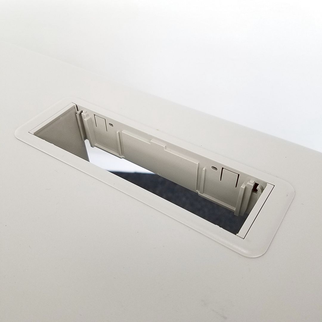 - 天板と幕板の間から対向配線できる基本タイプから、横配線も可能な上位タイプまで3グレード展開。配線をスッキリ管理。