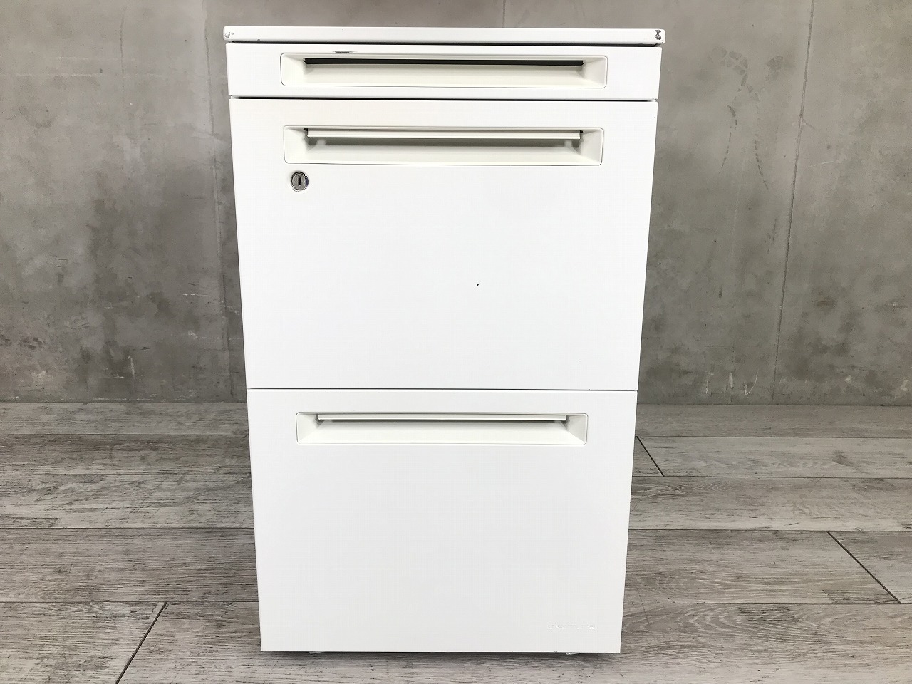 【フリアドデスクや平机の収納力アップに最適!】■オカムラ(okamura)製 アドバンス(ADVANCE)シリーズ 3段ワゴン フリアド用 W390×D575×H650㎜ ■シリンダー錠 ■ホワイト ※日焼け有