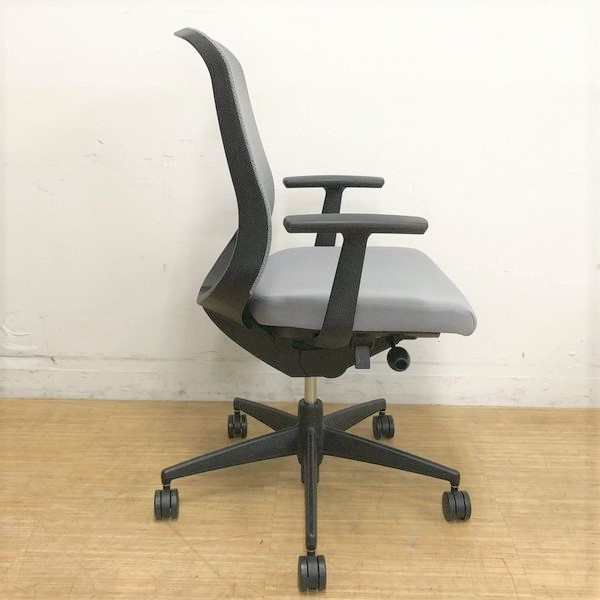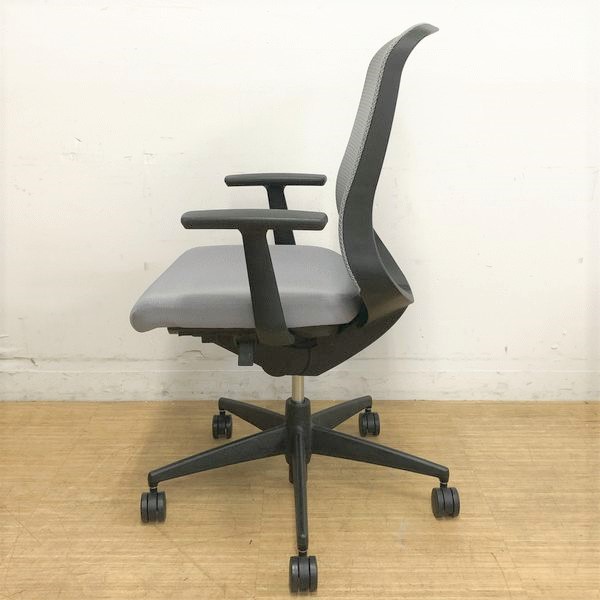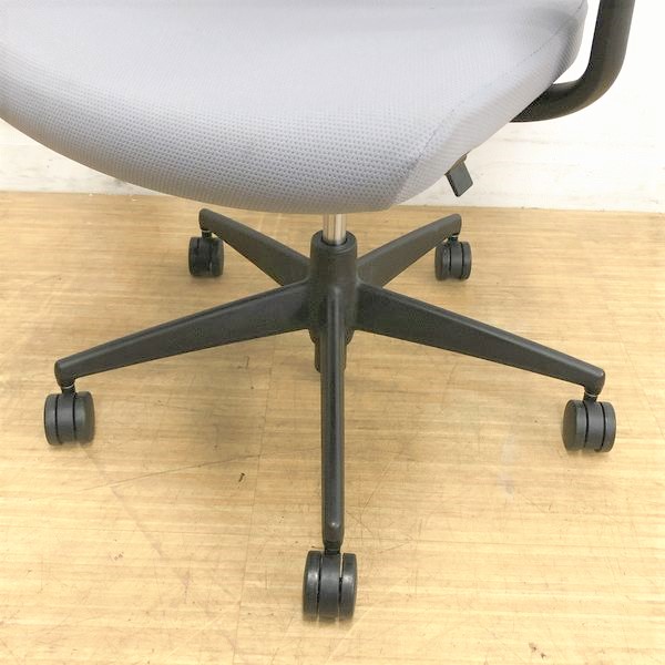 背もたれがメッシュのチェアは、構造上、外枠となるフレームが存在します。小さめのメッシュチェアは背中にフレームが当たったり、メッシュの弾性を十分に得ることができないので、一般にメッシュチェアは大型になりがちです。しかし、シロッコチェアは、フレームを横ではなく縦方向に厚くしたバーチカルフレームで強度を確保しており、 小さめのボディでありながらメッシュ面が広く作られています。