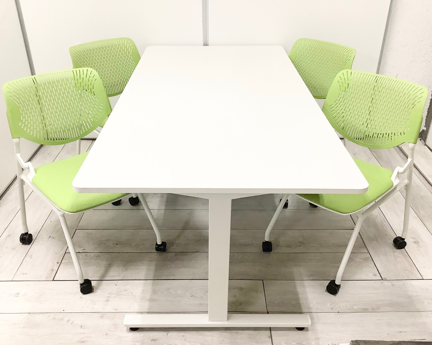 【スタンダードなデザインであらゆる空間にフィット!】■イトーキ製 ミーティングテーブル W1500×D750×H720㎜ ホワイト ■4名様での使用推奨サイズ!お誕生日席も使えば6名できます!