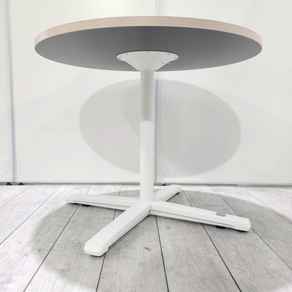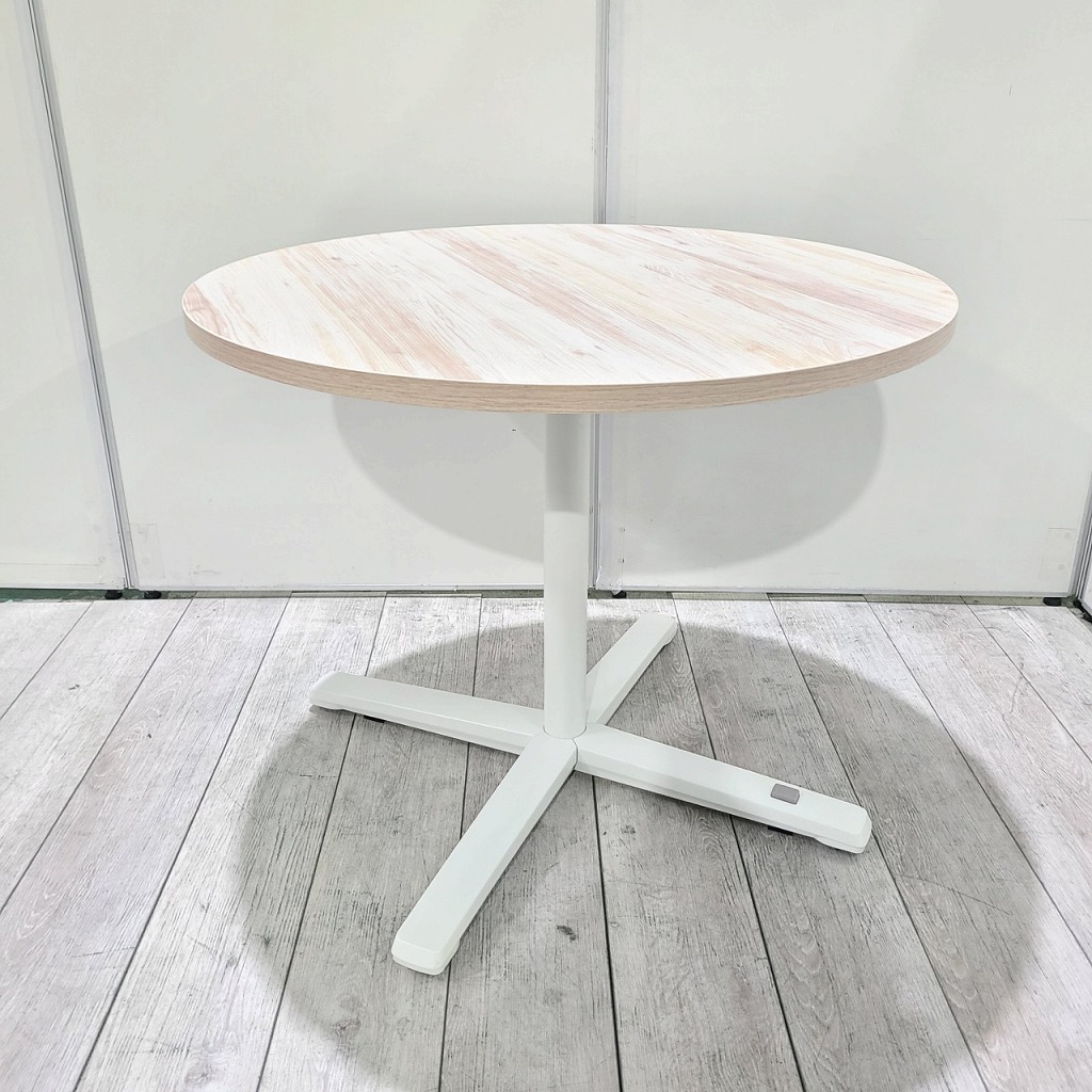 【トレンド】片付けがしやすいキャスター付きの丸テーブル ミーティングテーブル ビンテージエルム ネオホワイト 900Φ- 東大阪店