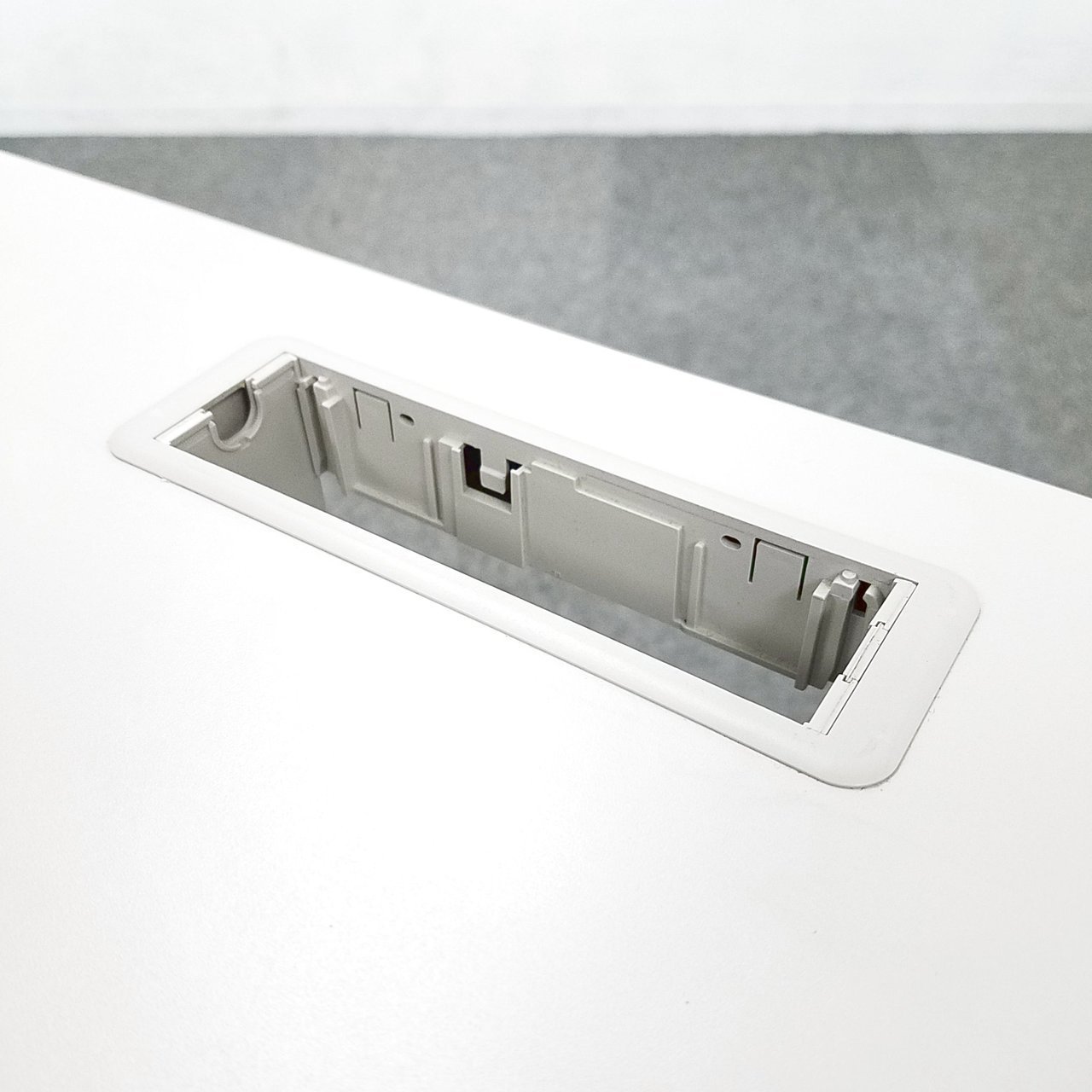 - 天板と幕板の間から対向配線できる基本タイプから、横配線も可能な上位タイプまで3グレード展開。配線をスッキリ管理。