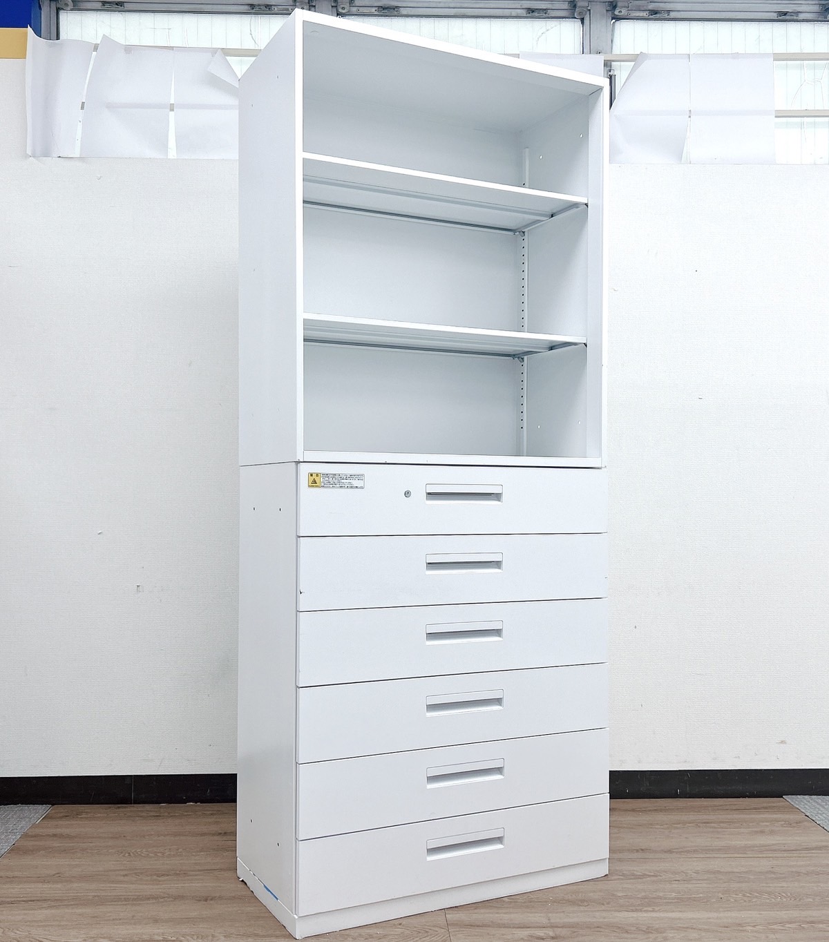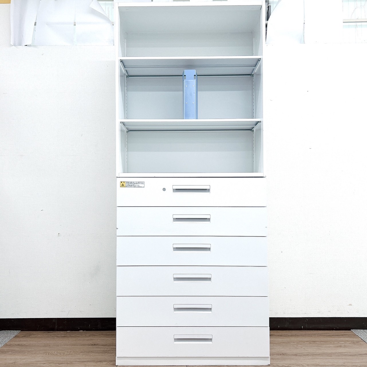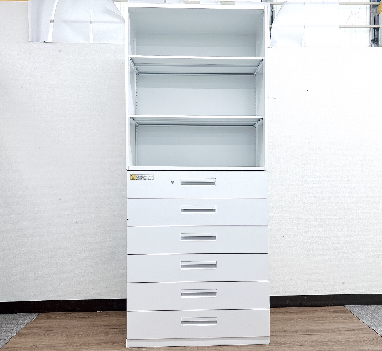 - 一部不具合ありそ引出の開閉不可、施錠不可、棚板無しといったの書庫の本来の効用を果たすための機能以外の一部が使用不可(例、扉、引出の開閉がしづらいなどがある。 )