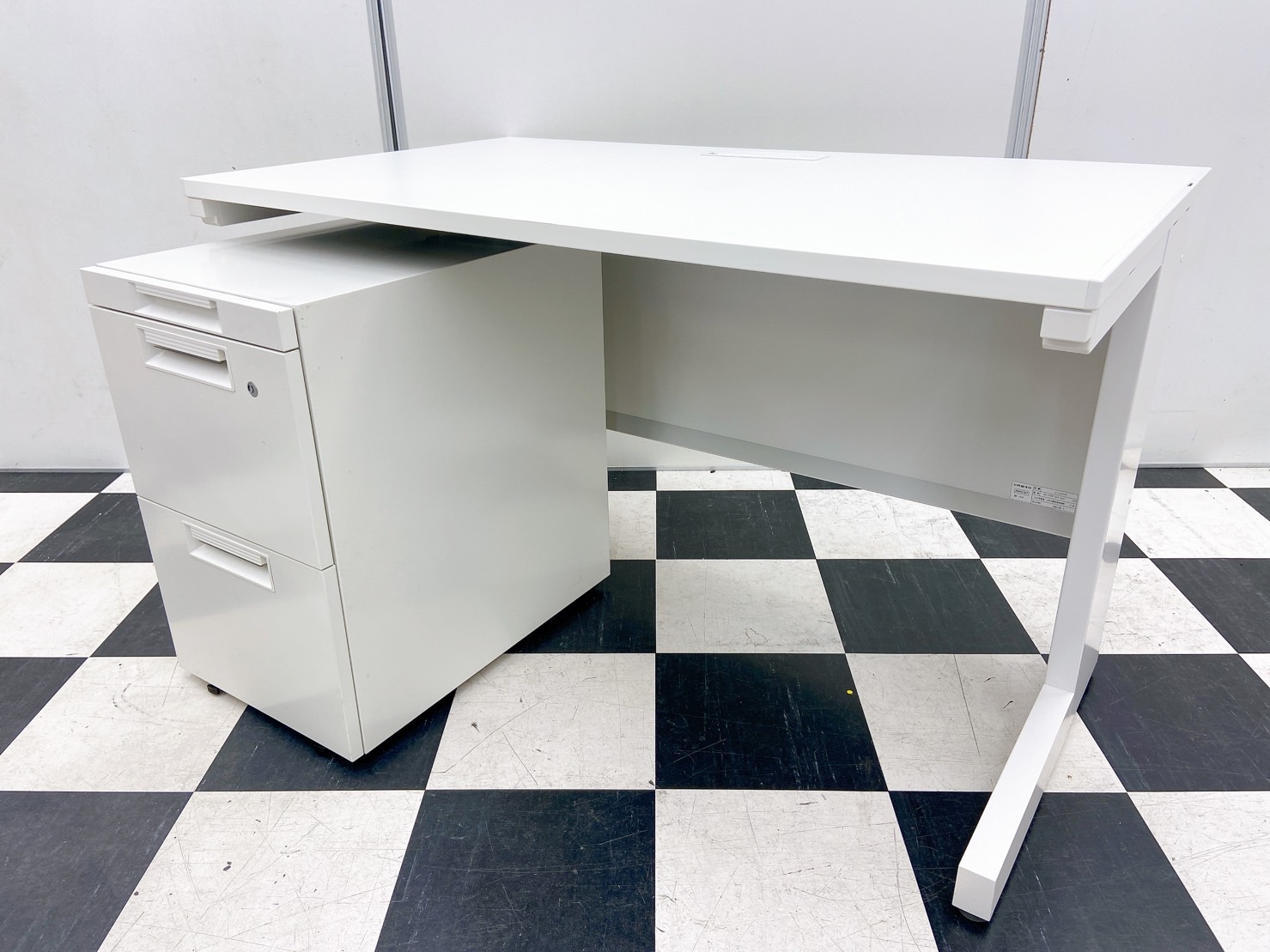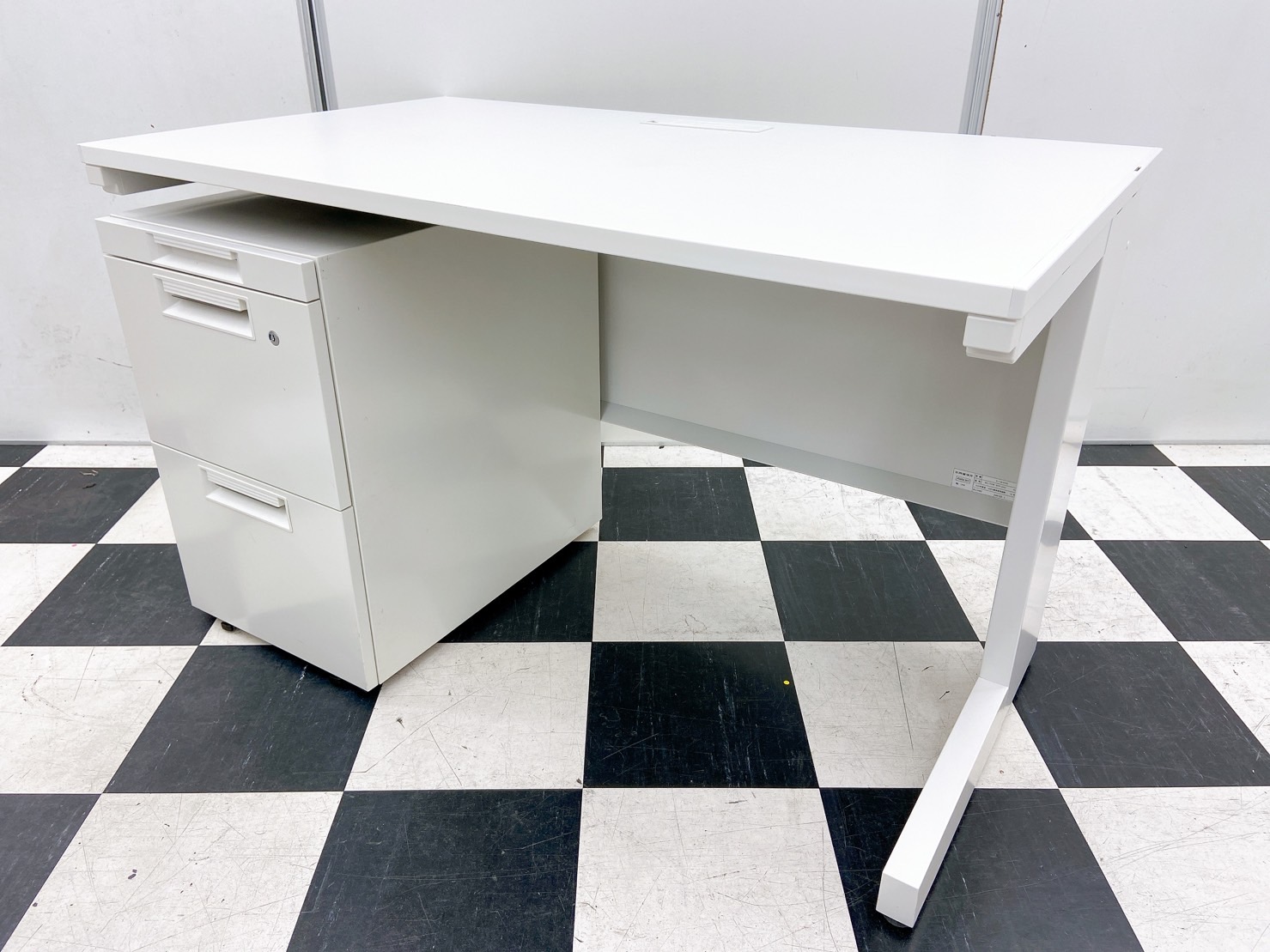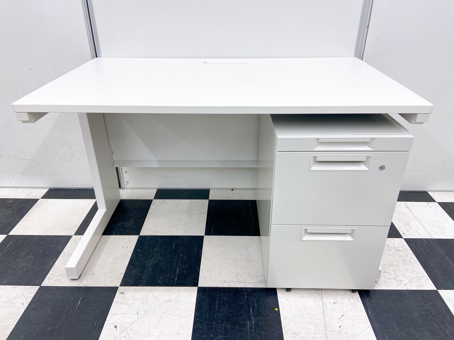 【引き出しつきデスクとワゴンの特別セット!】■内田洋行 スカエナシリーズ デスク+ワゴンセット ■横幅1200㎜×奥行き700 ■引き出しなし ■ホワイト 【中古でお得に買うなら品質の良いデスクを!】 ※ワゴンは在庫状況によって変動致します。